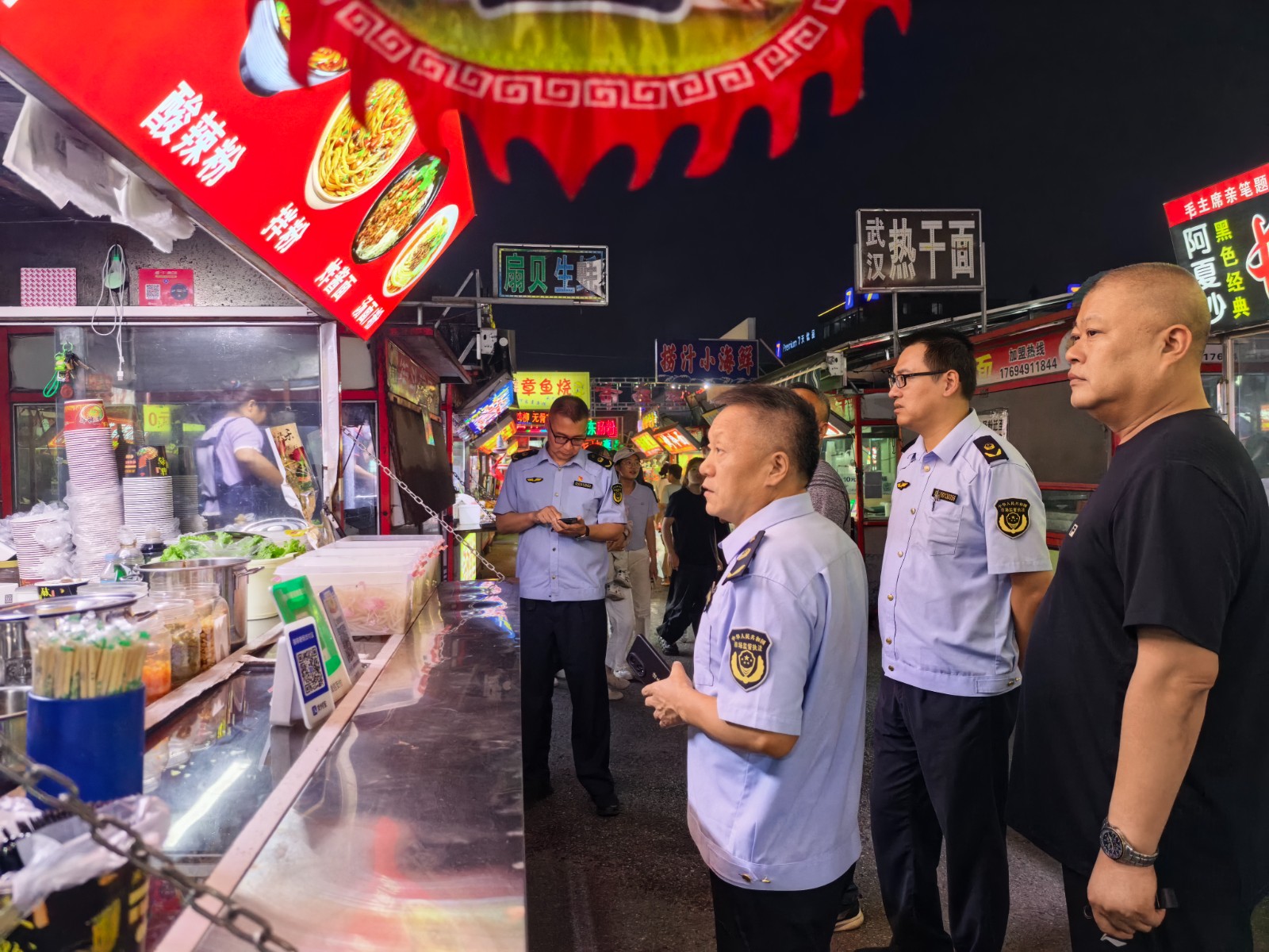 津滨网讯(记者 李婷婷 报道 刘汯林 摄影)近日,为加强对夜市食品安全的监管,保障广大市民的饮食安全,大港街道办事处联合市场监管所对大港夜市、商业步行街港资夜市的摊位进行了一次专项夜查行动。