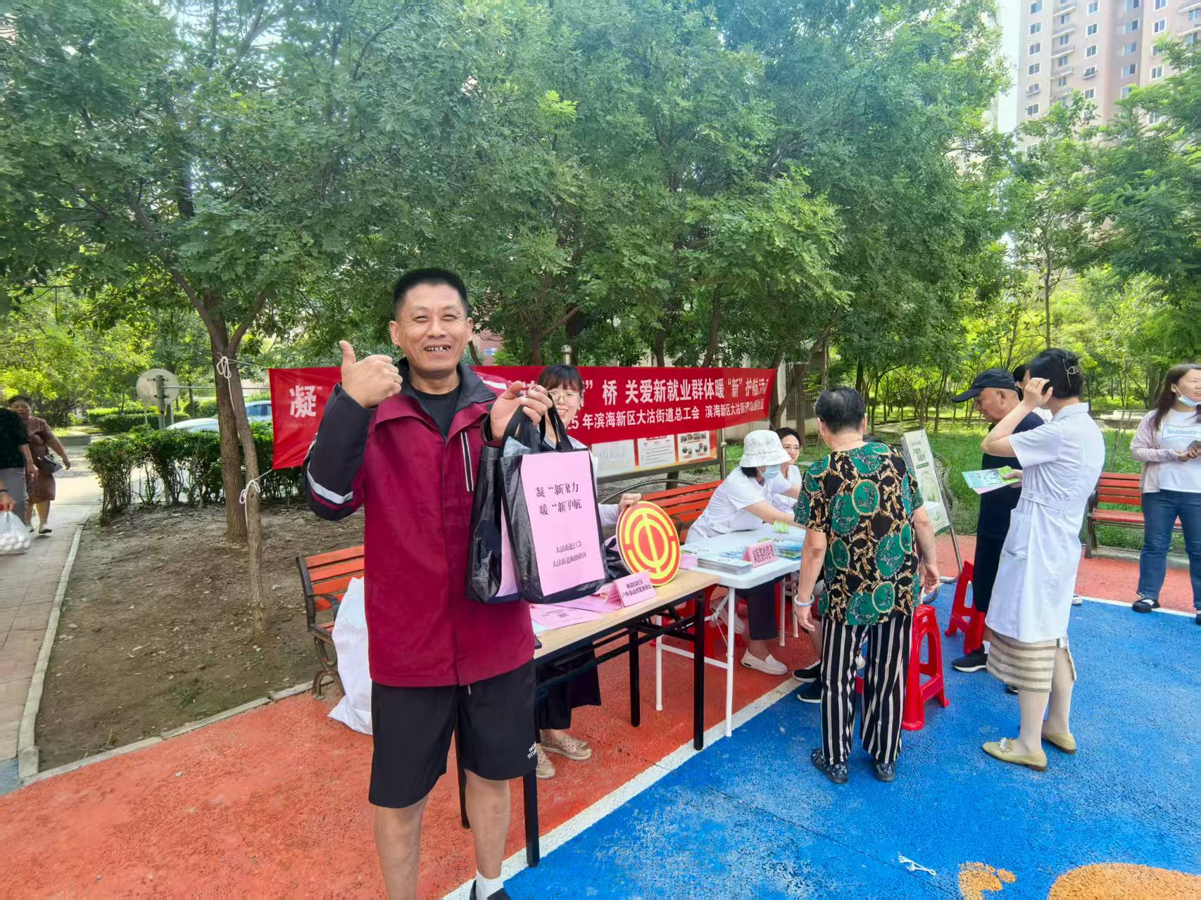 此次活动通过“物资+服务+关怀”的组合形式,既为新就业群体解决了实际困难,更让他们深切感受到社区驿站的温暖,进一步拉近了彼此距离,为构建和谐共融的社区氛围注入了暖“新”力量。(大沽街道供图)