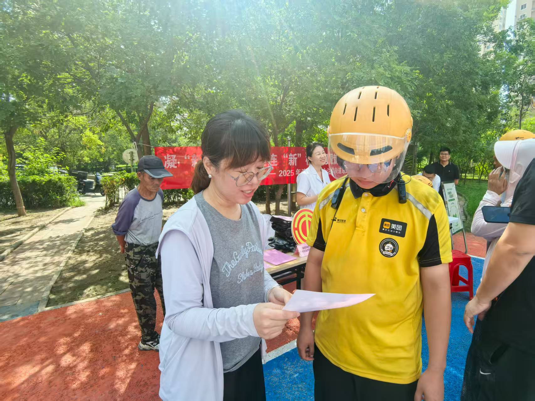 津滨网讯(记者 张智)炎炎夏日,高温、高湿、多雨的气候给快递员、外卖小哥、网约车司机等户外新就业群体带来诸多工作挑战。为切实保障他们的安全健康,传递社区关怀,增强群体凝聚力,近日,大沽街道和谐园社区户外劳动者服务驿站以“凝‘新’聚力 共建连‘新’桥”为主题,开展了一场暖“新”暖心护航活动,将贴心服务送到户外劳动者身边。