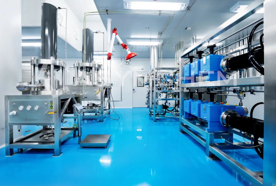 据了解,该厂房配置5L至1000L全规模合成以及配套的分离纯化设备,可实现克级至数十千克级别的高活化合物全流程生产,年产量可达200千克以上。所有单元操作均配置优质合理的工程控制设备和自动机械,在实现操作全过程密闭的基础上,最大限度地降低员工劳动强度。设备的密闭性能(CPT)可达1ng/m³(纳克/立方米),充分满足高活性药物在生产各环节的严格安全要求。