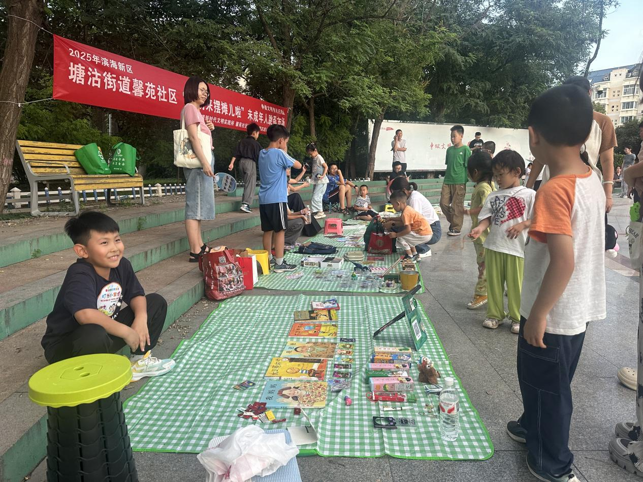 津滨网讯(记者 刘淼 摄影报道)日前,塘沽街道馨苑社区关工委举办了“童心跳蚤市场·红色光影夜”活动,吸引了众多社区青少年与居民踊跃参与。