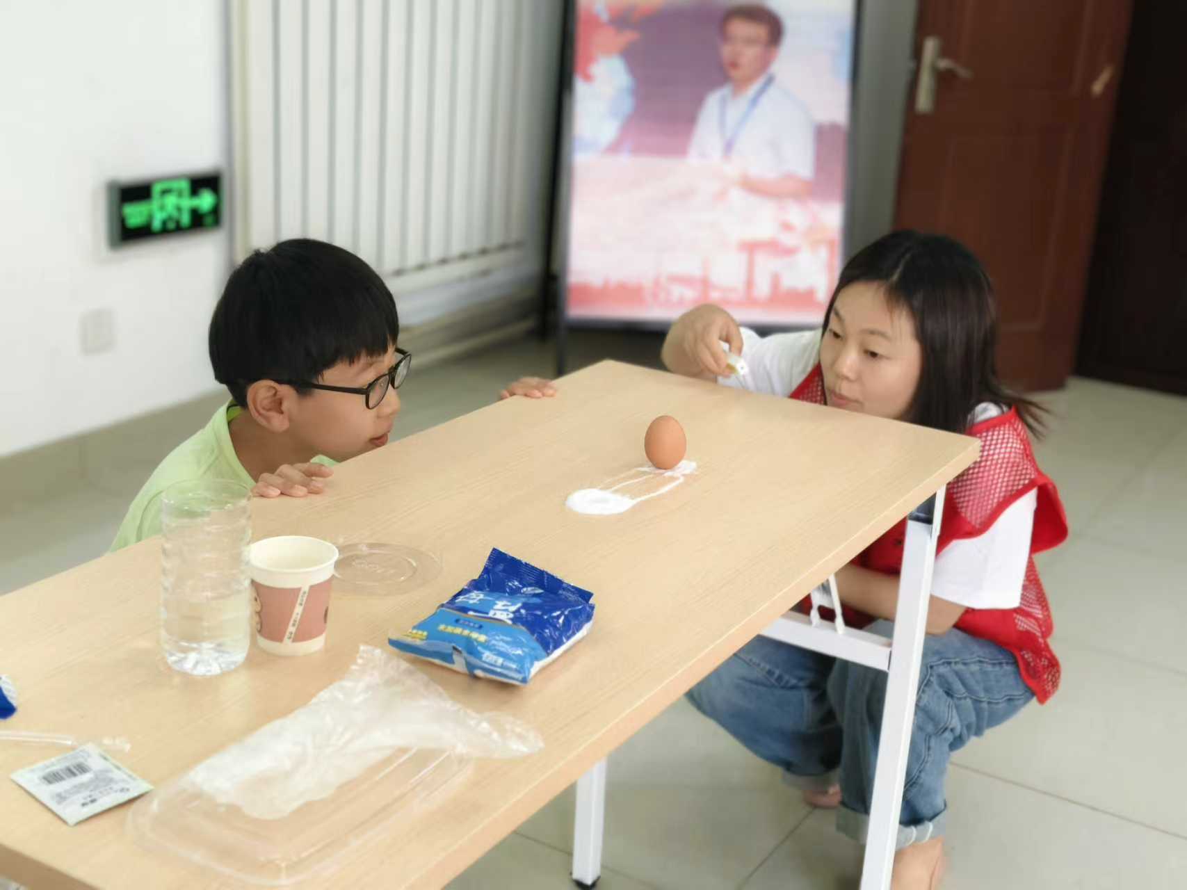 真正点燃全场的是“趣玩科学小实验”。湿衣服在密封袋里“隐身”,光的折射把视觉错觉玩成了魔术;酵母在面团里悄悄吹起“小气球”,让面包松软可口;鸡蛋借助几粒盐稳稳立起,重心的秘密被孩子们亲手抓住。这些小实验不仅妙趣横生,更将抽象的物理、化学知识转化为直观可感的体验,极大地调动了孩子们参与的热情,现场惊呼声和欢笑声不断。