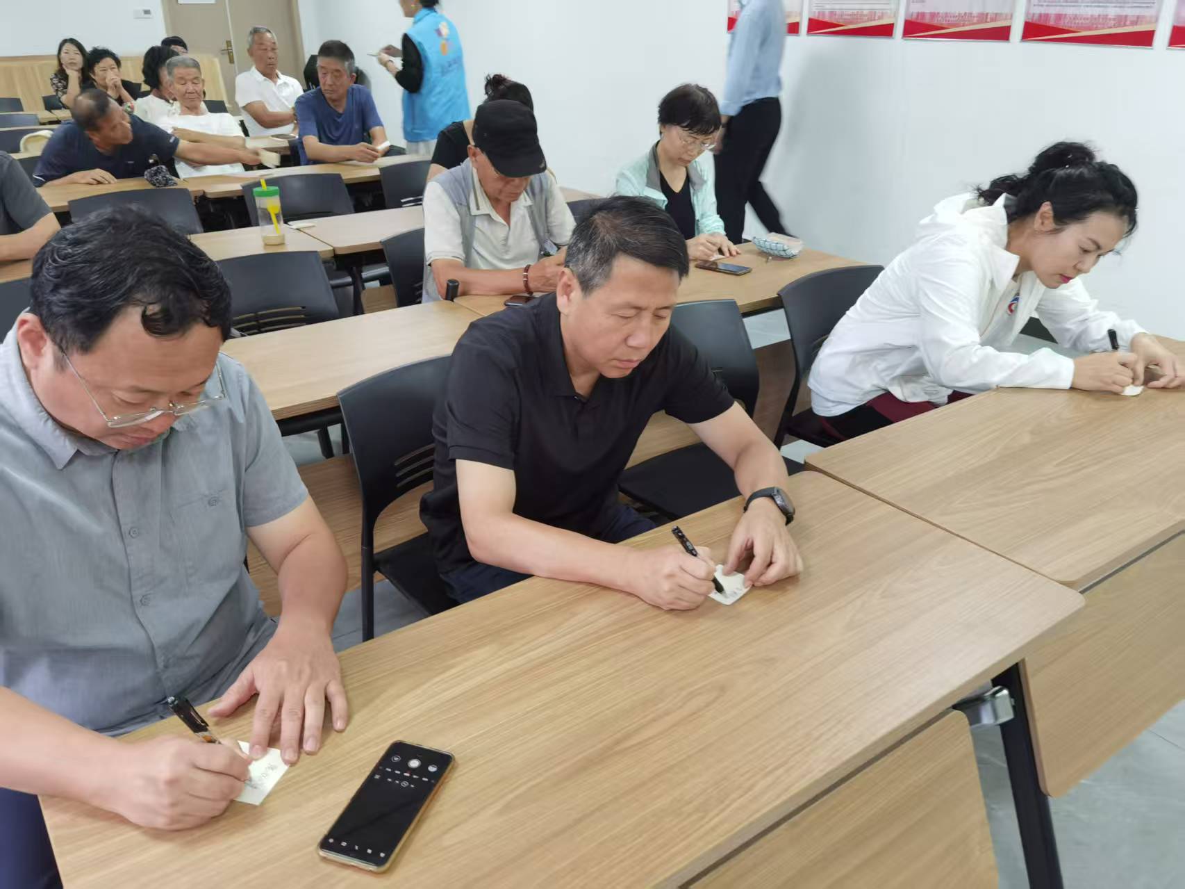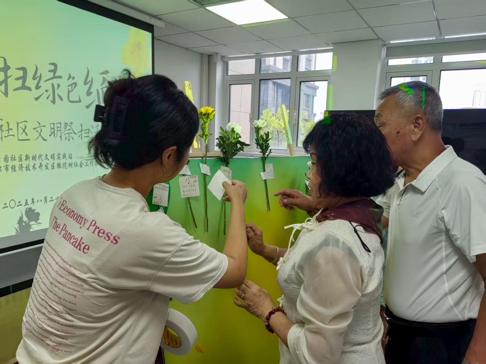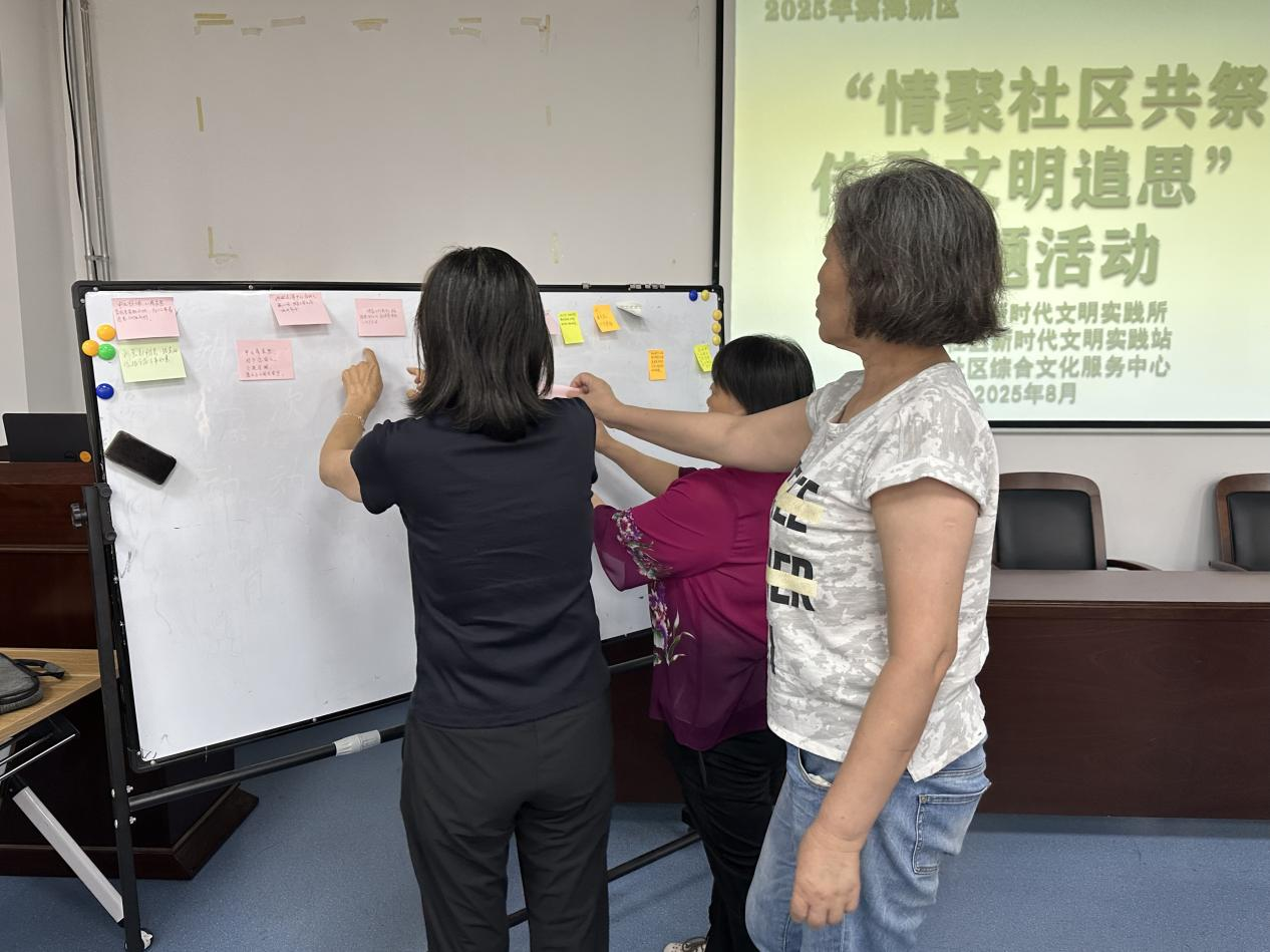 随后的“寄语寄哀思”环节,社区预先准备了便签纸,居民们纷纷拿起笔,把对逝去亲人的思念与祝福写在纸上。一句句质朴的话语,饱含着深深的眷恋。居民们亲手将便签粘贴在白板上,形成了一面满载思念的“追思墙”。