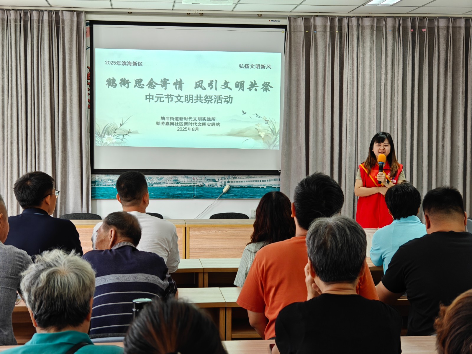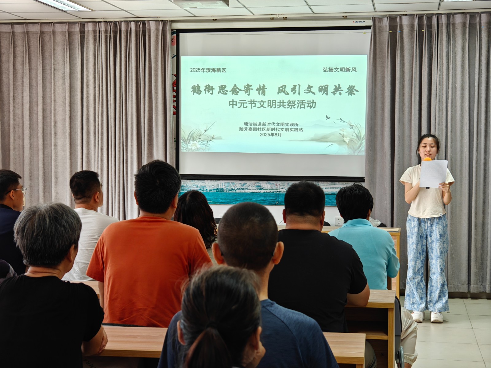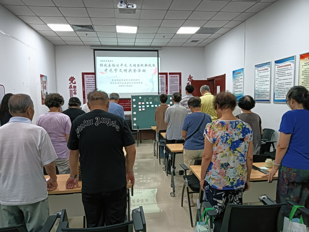 在中元节来临之际,塘沽街道贻芳嘉园社区精心组织开展“鹤衔思念寄情 风引文明共祭”中元节文明共祭活动。塘沽街道包保科室工作人员与社区居民齐聚一堂,在庄重而温情的氛围中,以文明方式缅怀先人、寄托哀思,让传统节日焕发新时代文明光彩。