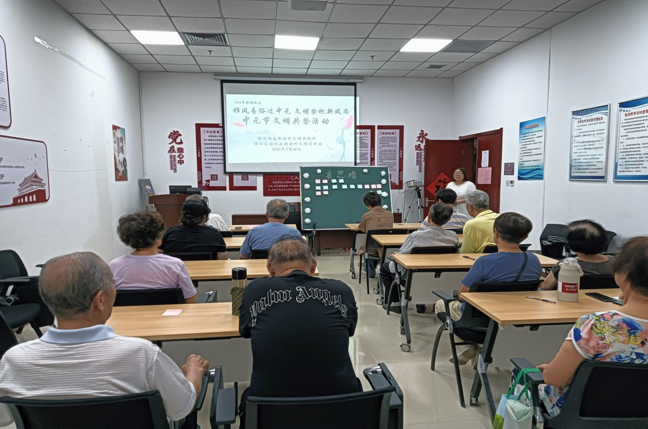 活动伊始,社区工作人员手持倡议书,向在场居民发出文明祭扫的诚挚号召。他们结合近期周边地区因不规范祭扫引发的安全事例,详细阐释了文明祭扫的重要意义,倡导大家采用鲜花祭奠、网络追思、家庭追思会等绿色环保方式,替代传统祭扫行为。为让居民深入了解传统节日的文化内涵,社区工作人员详细介绍了中元节的历史渊源。工作人员用通俗易懂的语言梳理了节日的发展脉络,让居民更深刻地领会“慎终追远、民德归厚”的节日核心价值,在聆听中感受传统文化的温度。