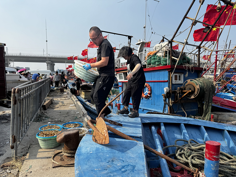 记者在北塘渔港看到,满载而归的渔船伴随着汽笛声缓缓靠岸。渔民们顾不上休息,迅速投入到卸货工作中。一筐筐鲜活的海产被抬到岸边,鱼虾翻腾、蟹爪挥舞,久违的渔港热闹景象再次呈现。“这趟收获挺好,蟹和虾数量不少,一靠岸就有人等着买。”一位渔民对记者说,开海后的“第一网”渔获往往最受市场欢迎。