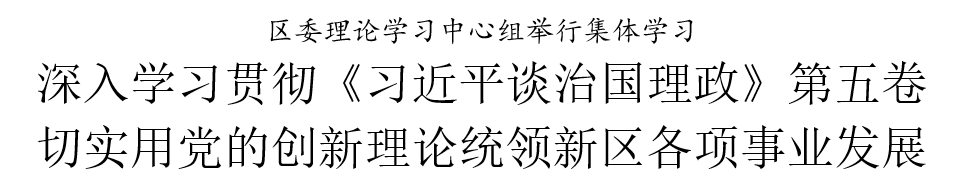 连茂君在讲话中指出,《习近平谈治国理政》第五卷生动记录了习近平总书记领导党和人民推进中国式现代化的伟大实践,集中展现了坚持“两个结合”、推进马克思主义中国化时代化的最新成果,充分反映了我们党推动构建人类命运共同体的智慧担当,是一部全面系统反映习近平新时代中国特色社会主义思想最新成果的权威著作,为实现新征程党的使命任务提供了根本遵循。全区上下要学好用好《习近平谈治国理政》第五卷,学思践悟习近平新时代中国特色社会主义思想,自觉从中悟规律、明方向、学方法、增智慧,切实用党的创新理论统领新区各项事业发展。