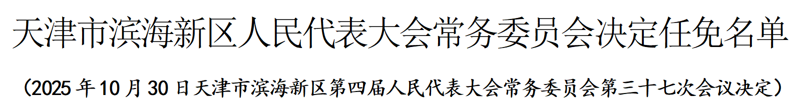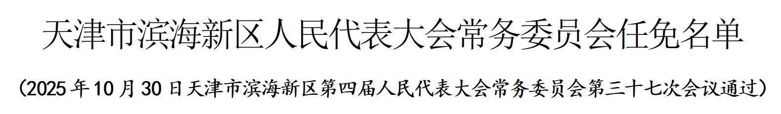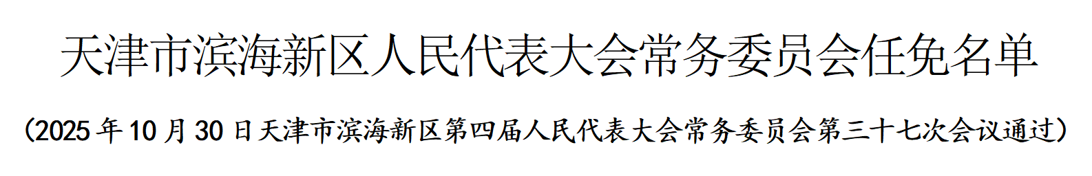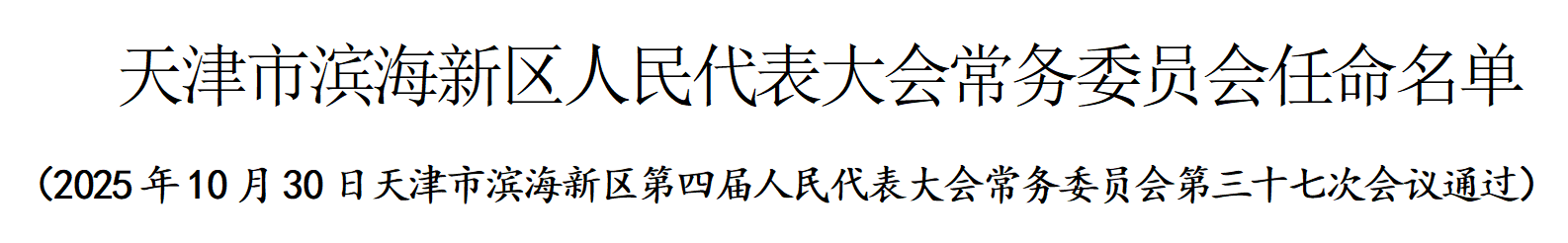 任命曹亚军、蔡斌为天津市滨海新区第四届人民代表大会常务委员会代表资格审查委员会委员。