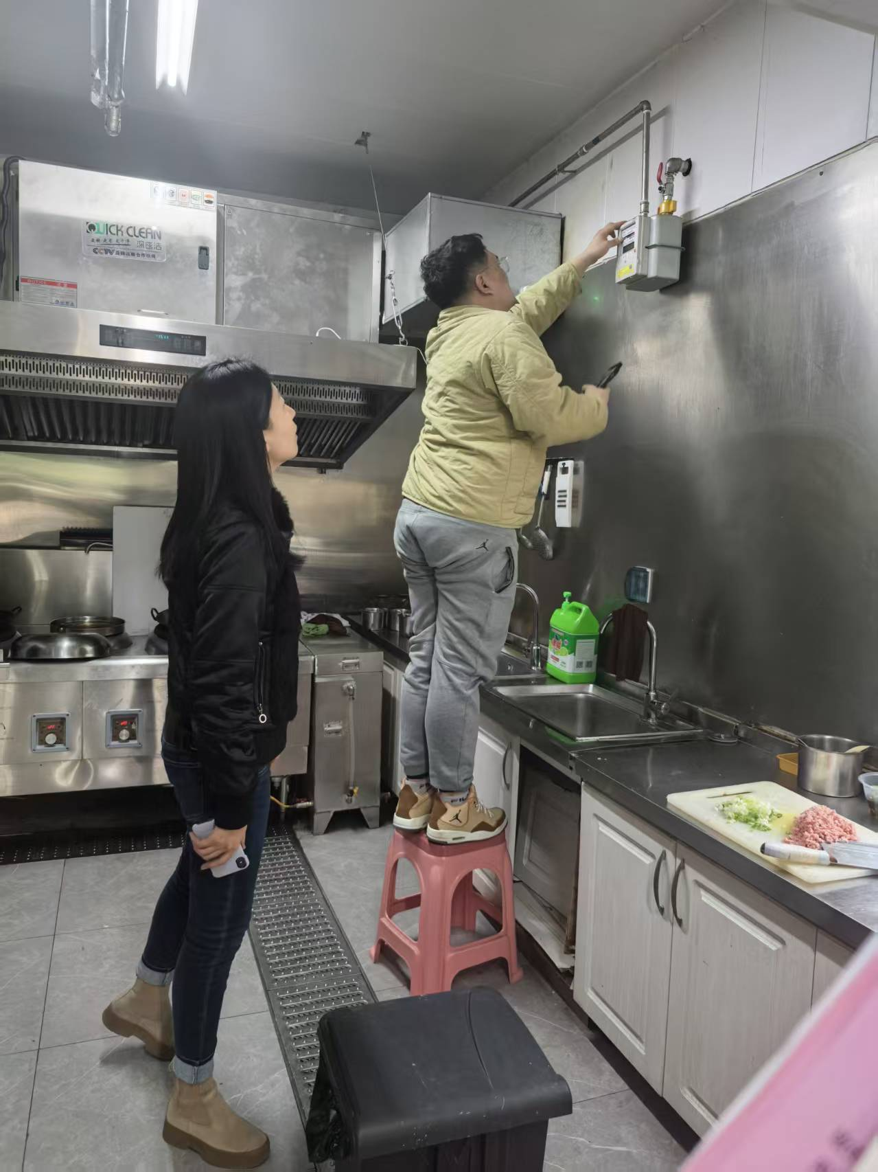 围绕“全域无死角、全链条无断点”要求,社区工作人员沿楼栋周边开展地毯式排查,重点检查消防通道是否被占、消防栓水压是否正常、灭火器是否在有效期内,同时逐一核验商户燃气报警器安装位置及用电线路情况,确保隐患管理清晰。