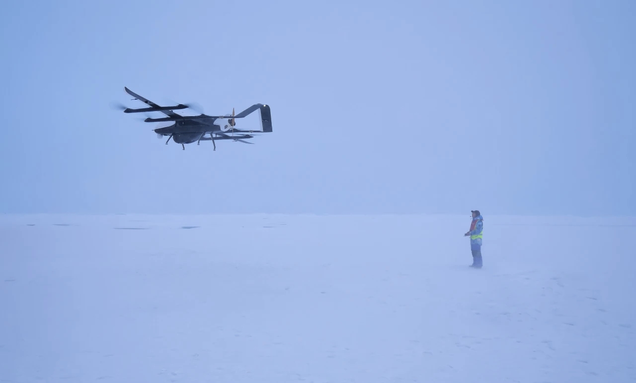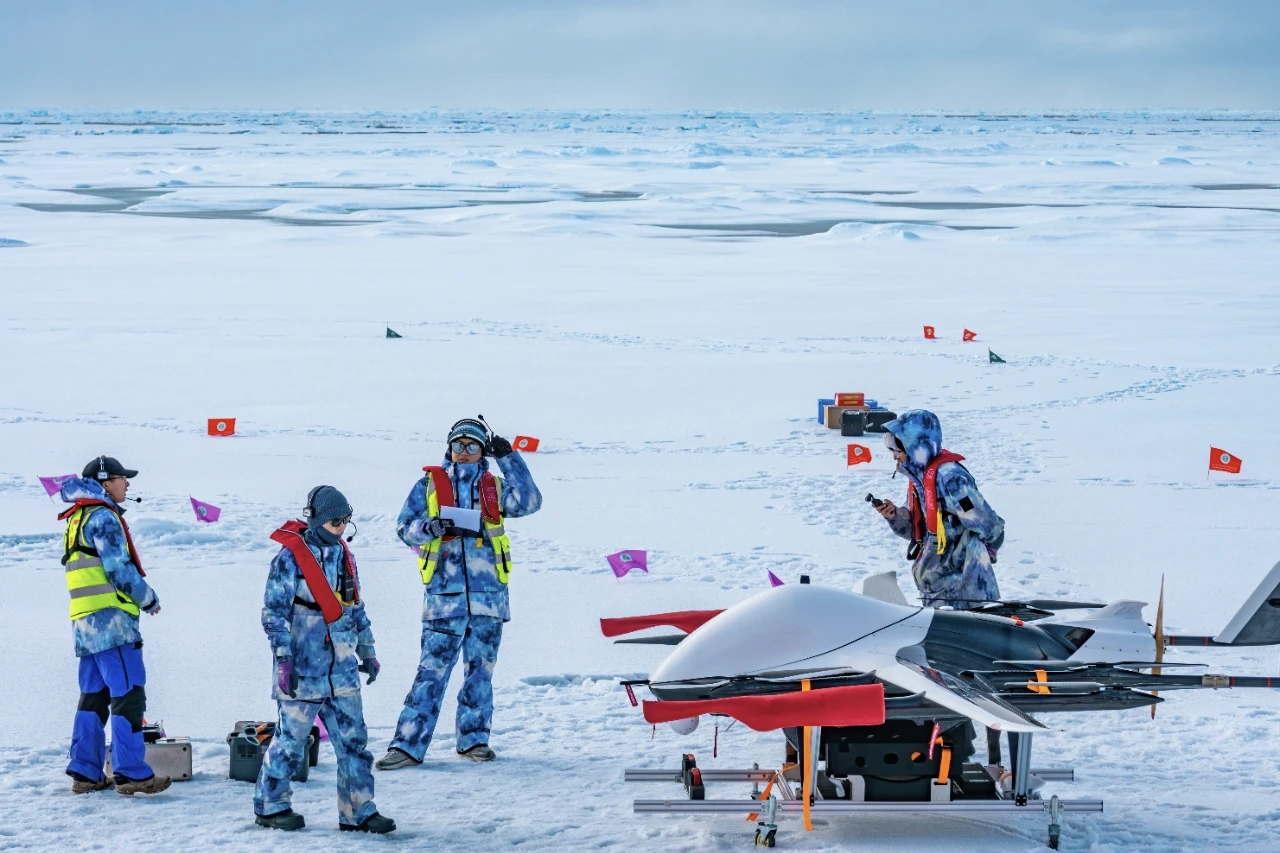 从无畏极寒的稳定起飞,到面对复杂冰情的精准数据采集,再到多场景、多模式的协同验证,飞马无人机以其“硬核”表现,成为科研人员在冰原上可靠的“空中伙伴”。此次科考实践,不仅充分验证了国产智能航测遥感无人机在极区的卓越适应性与强大作业能力,为北极气候变化及其全球效应研究提供了宝贵的一手数据,更在极地装备应用与协同作业模式上实现了重要突破,生动彰显了“天津智造”的技术底气与实力,为国产高端装备在极端环境科考应用中树立了崭新的标杆。(图片由飞马机器人提供)