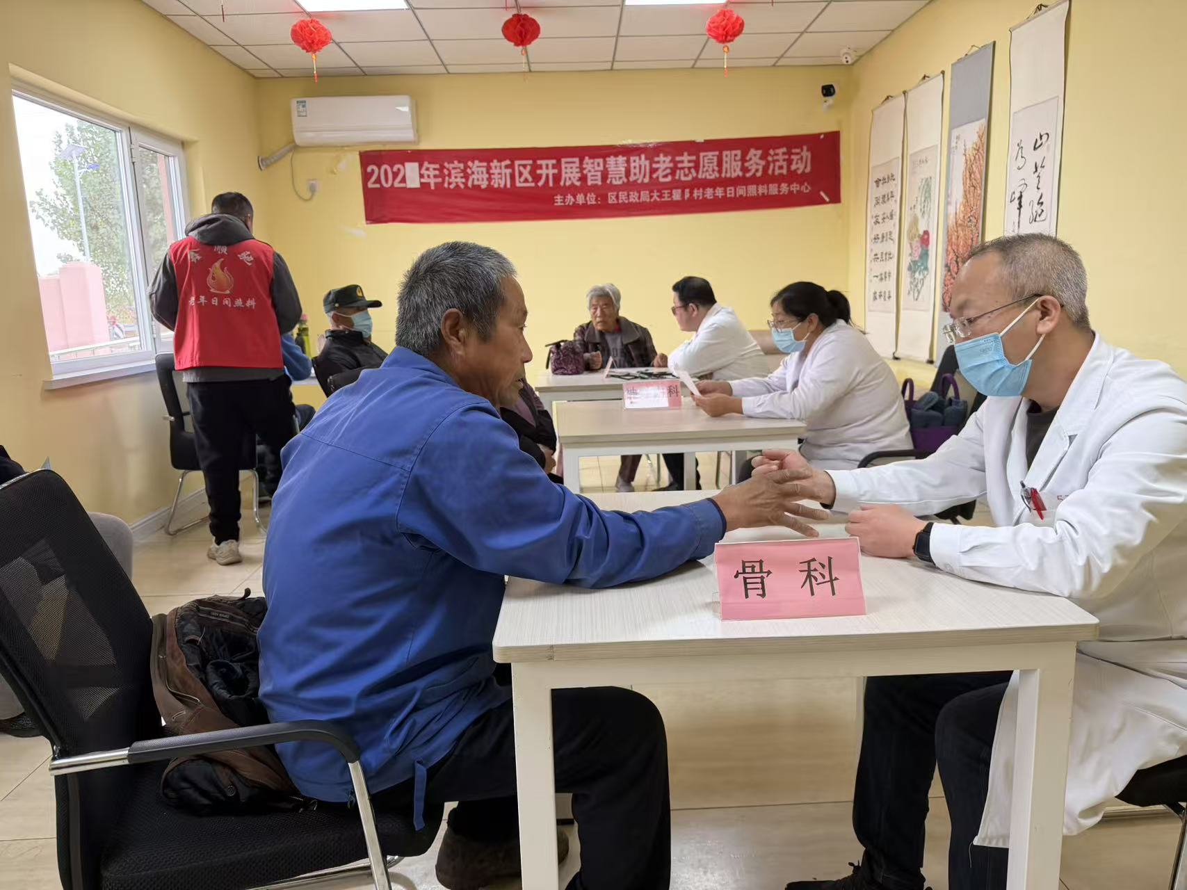在大王瞿阝村日间照料中心,一场“家门口的义诊”让村民们赞不绝口。天津医科大学总医院滨海医院的医疗团队早早便抵达现场,内科、神经内科、骨科、B超、心电图、眼科等多个热门义诊项目一字排开,医护人员们带着专业的医疗设备和饱满的热情,耐心等候村民前来咨询。