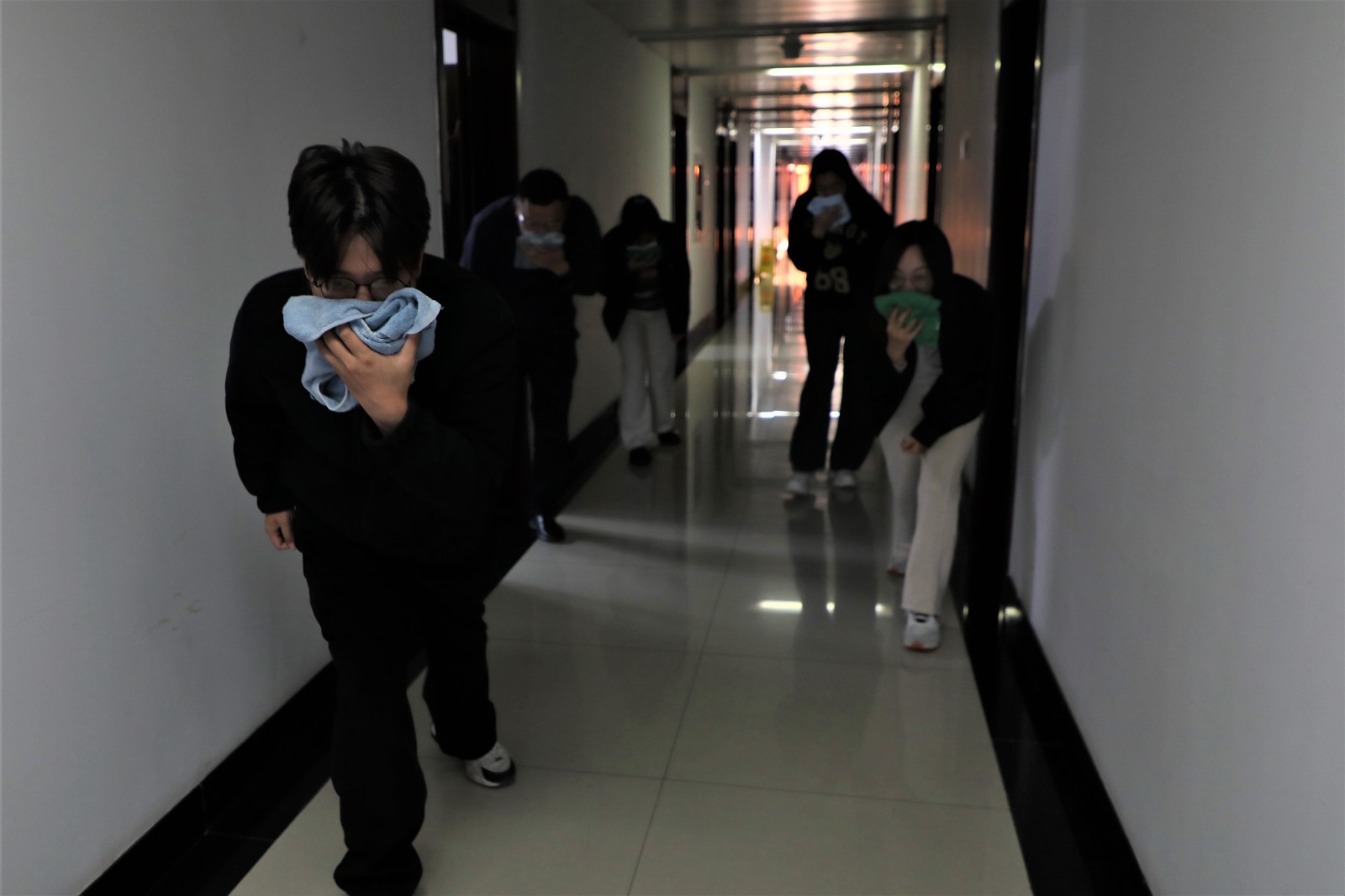 演练模拟井下作业公司办公楼一楼会议室突发火情。室内桌椅、窗帘被引燃后火势迅速蔓延,火情存在扩大风险。该公司立即启动消防应急预案,成立现场指挥作战小组,组织人员迅速撤离。义务消防队第一时间集结,分工明确、协同作战,对起火点展开初期扑救。疏导组有序引导员工快速撤离至指定集合区域,清点人数、排查遗漏。经过15分钟的协同处置,“火情”被成功扑灭,演练取得圆满成功。