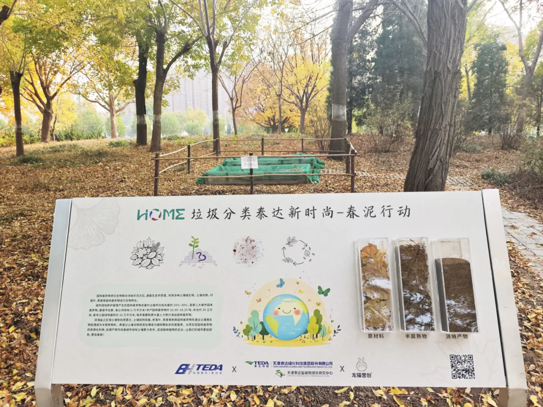 目前,泰达街各公园绿地中已设置5个园林废弃物原位生物联合消纳点,让落叶“化作春泥更护花”,打开城市生态良性循环新格局,实现生态与经济双重效益。