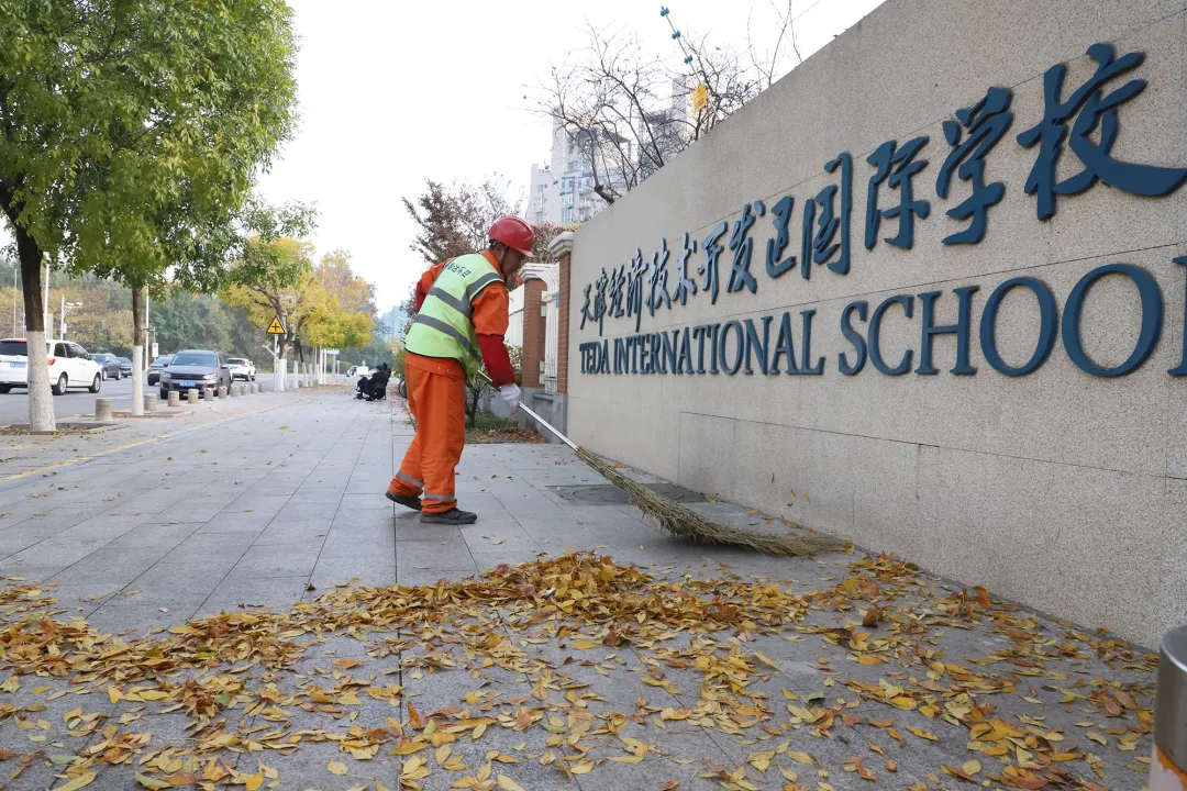 此外,泰达环卫公司还推行“潮汐作业”模式,根据落叶量动态调配力量,实行高峰时段重点清理、平峰时段全面覆盖,实现日产日清闭环处置,保持城市环境干净有序。(街道供图)
