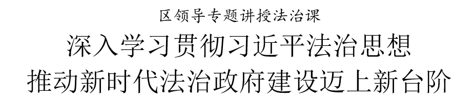 单泽峰指出,党的十八大以来,习近平总书记从党和国家发展全局的高度定位法治、布局法治、厉行法治,创造性提出了一系列新理念新思想新战略,形成了习近平法治思想。区政府系统广大党员干部要深刻领会这一重要思想的精神实质和丰富内涵,站在坚定拥护“两个确立”、坚决做到“两个维护”的高度,不断提升法治思维和法治素养,切实把学习成效转化为推动新时代法治政府建设的生动实践。