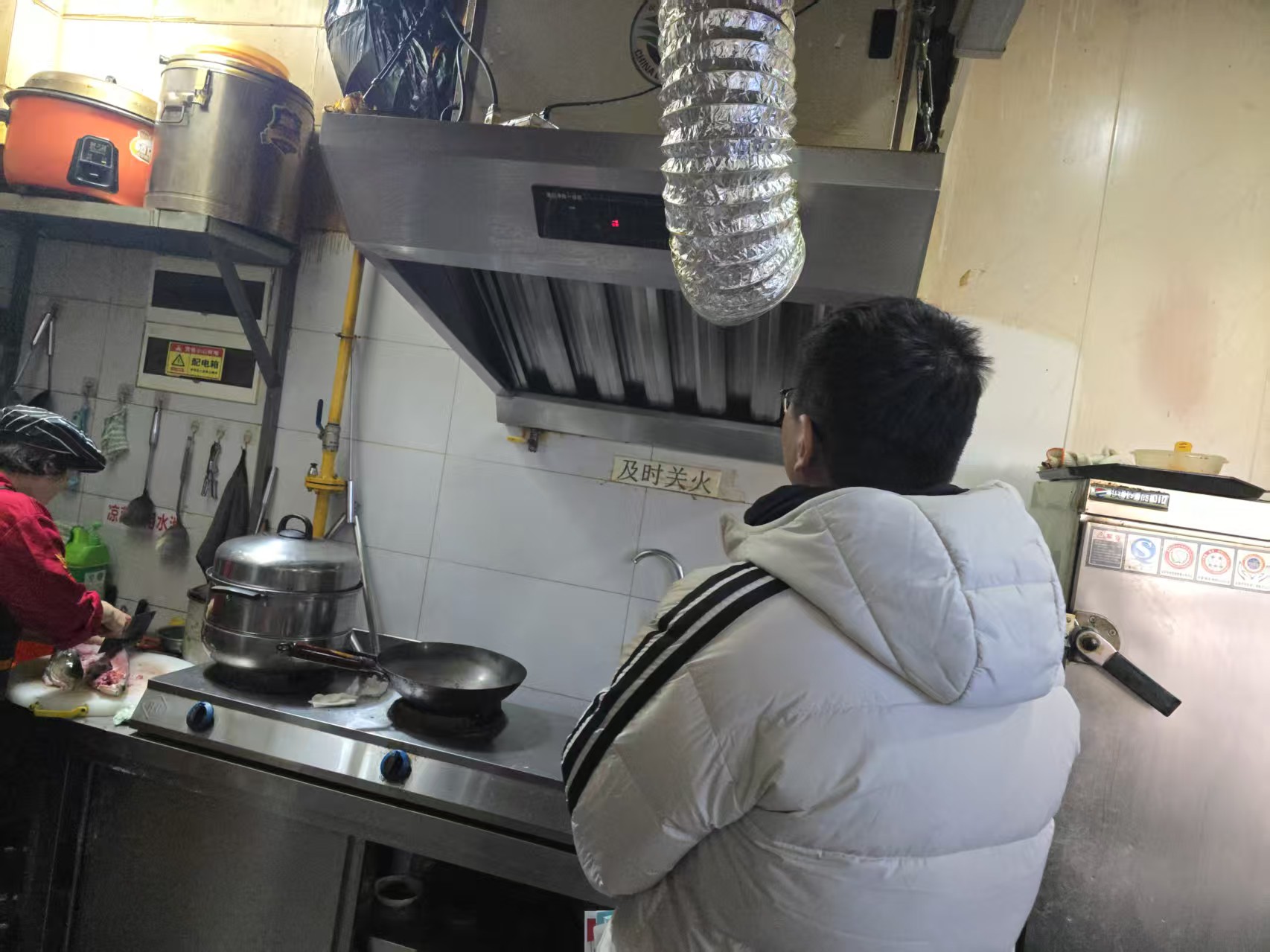 此次巡查重点围绕餐饮底商油烟净化设备的清洗频率、清洗记录台账、设备运行状态及排烟管道密封性展开。巡查人员采取“实地检查 + 台账核查”的方式,逐户走进辖区内火锅店、烧烤店、家常菜馆等重点餐饮商户。在一家家常菜馆后厨,巡查人员仔细查看油烟净化器滤网的清洁程度,现场询问商户负责人清洗周期,并核对清洗服务公司出具的专业清洗凭证。针对部分商户存在清洗记录不完整、滤网油污堆积较厚的问题,巡查人员明确要求其在规定期限内完成全面清洗,并建立详细的清洗台账,后续将进行“回头看”复查。