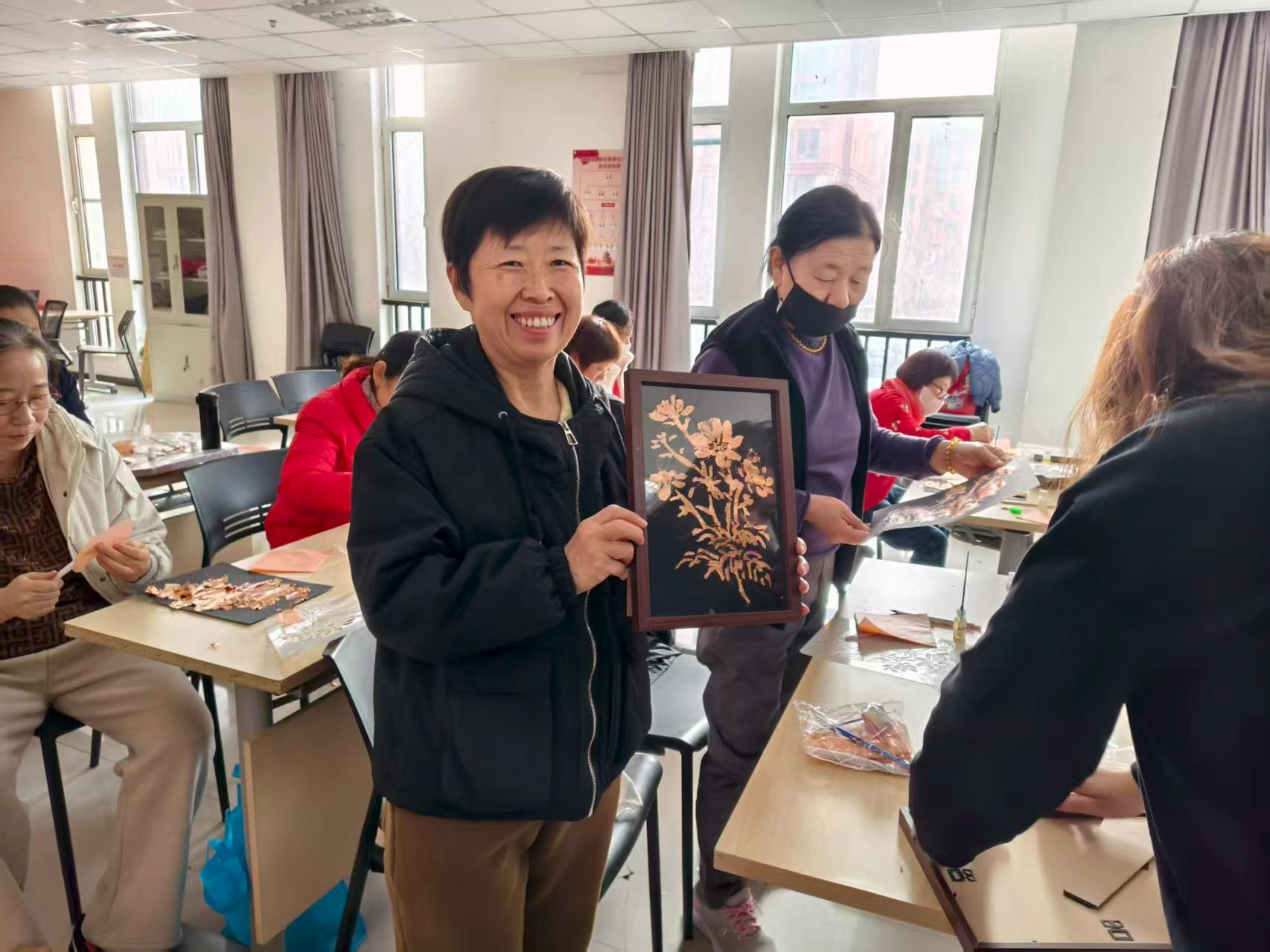 “年纪大了,很少有机会做这种手工,今天不仅学会了新技能,还认识了新朋友,太开心了!”参与活动的张阿姨捧着亲手制作的相框,笑容满面。一幅幅精致的烧箔画相框,不仅是老人们用心创作的艺术品,更承载着社区对老年群体的关怀与温暖。