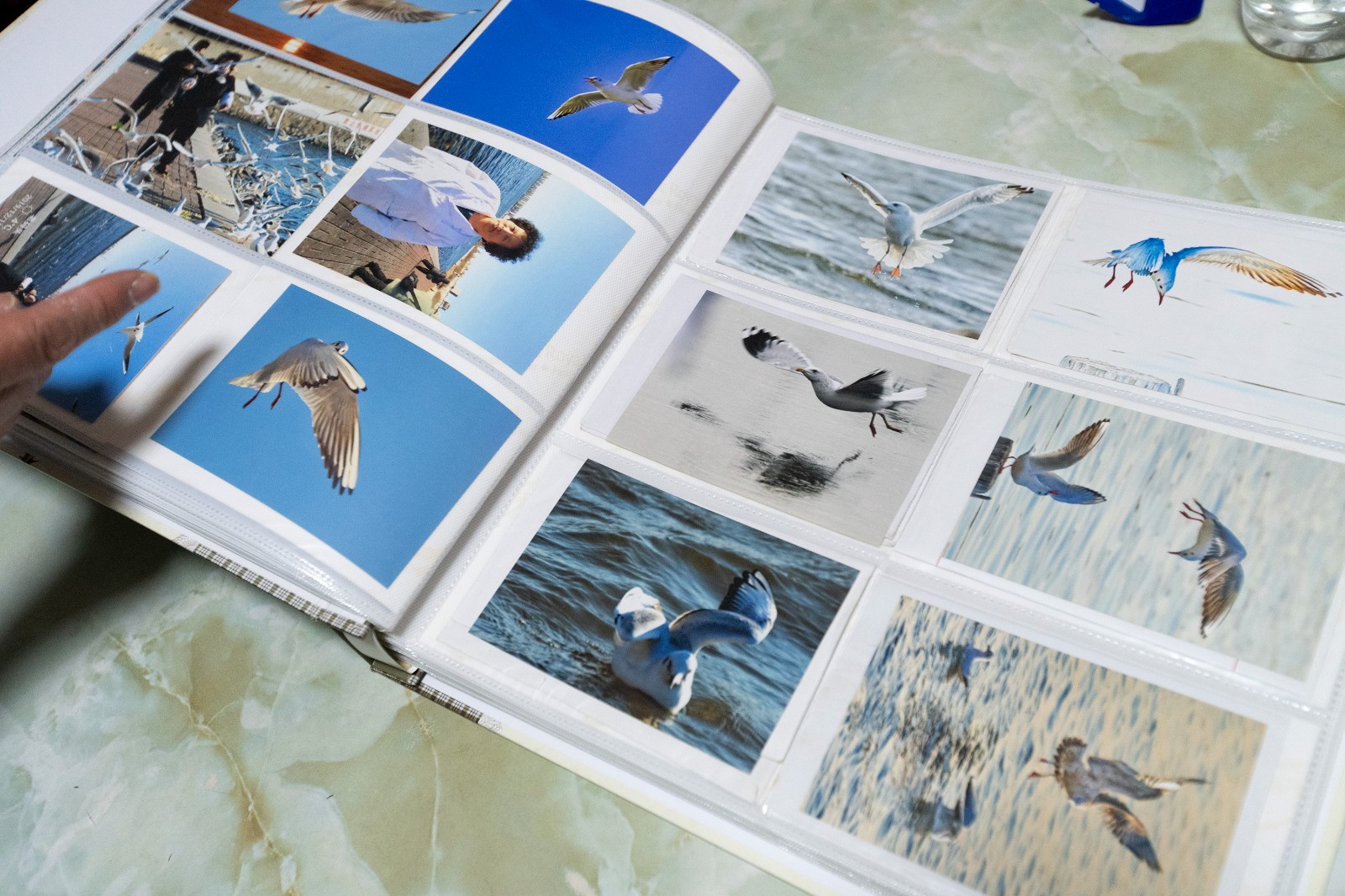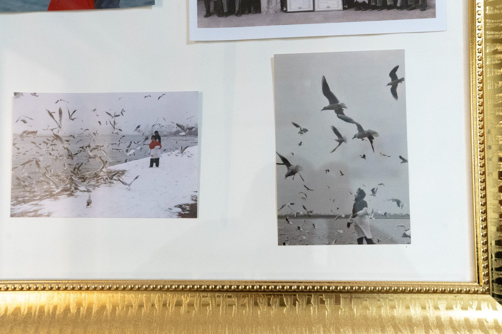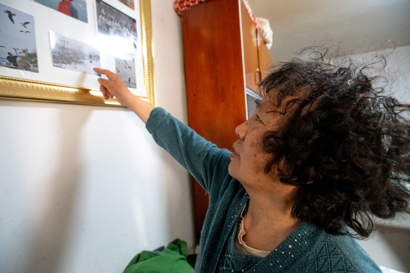 王和平家中墙上挂着这些年她喂海鸥与海鸥的合影照片