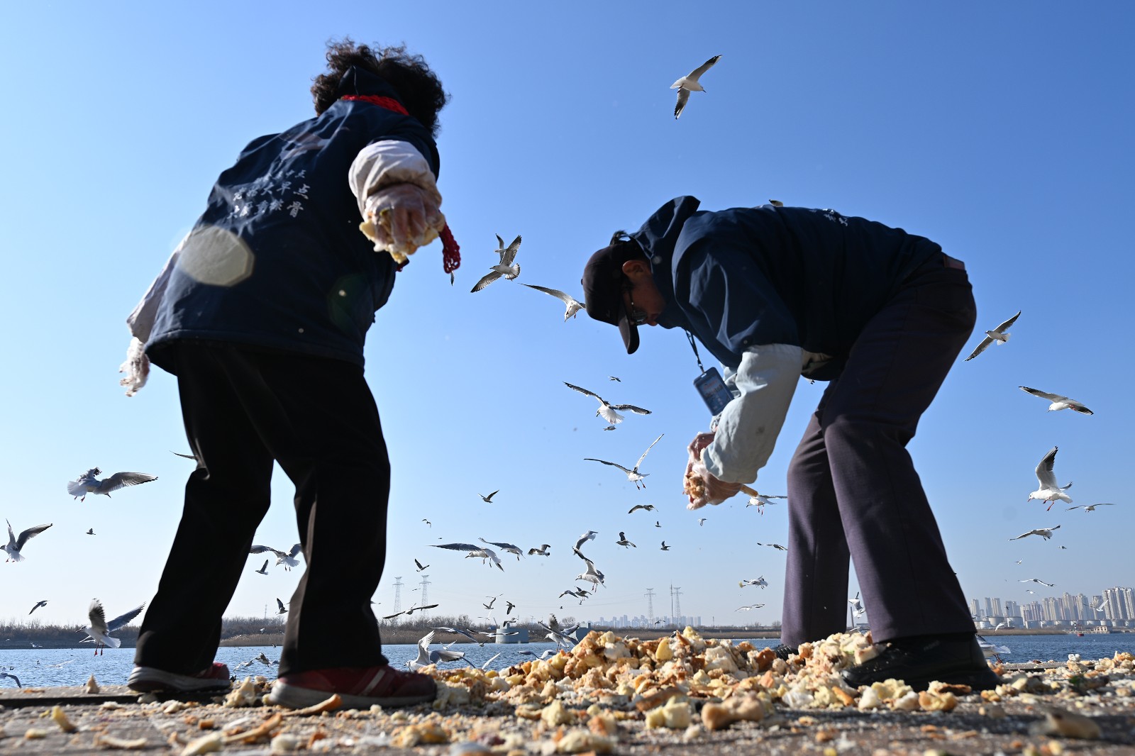 “规范化”的投喂与守护,吸引了更多志同道合者。王德敏从2011年开始加入,每日清晨,天还未亮,便已开车出发,前往王汝志老人家中,将老人头天仔细收集好的海鸥食物搬上车,再稳稳运抵老码头。这样的搬运,日复一日,风雨无阻。“每天不来看看,心里就像没看见自己孩子似的。”他说。