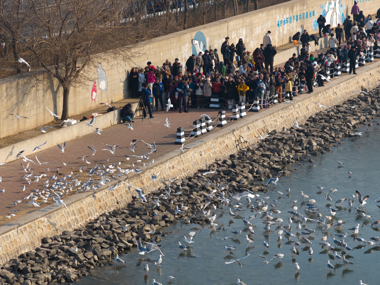 老码头的“白色精灵”海河河面飞舞盛景吸引不少京津冀甚至全国游客来看海鸥