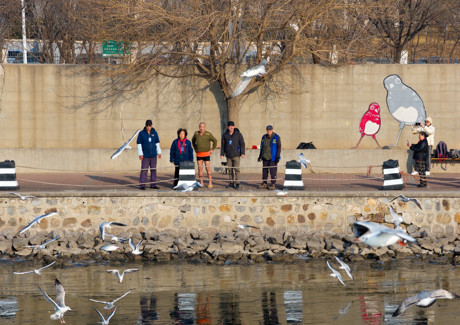 他们的付出,远不止投喂。救助,是另一项重要使命。王和平曾将受伤海鸥带回家,购买处理伤口的药品等进行救治;王德敏和志愿者们曾联手救助受伤的黑天鹅,联系动物园专业救护;至于被水中杂物所伤、困于冰面的海鸥与白骨顶鸡,得到救助的次数已难以精确计数。“看着它们那样,心里疼得慌。”王和平简单的话语,道出了所有志愿者的心声。