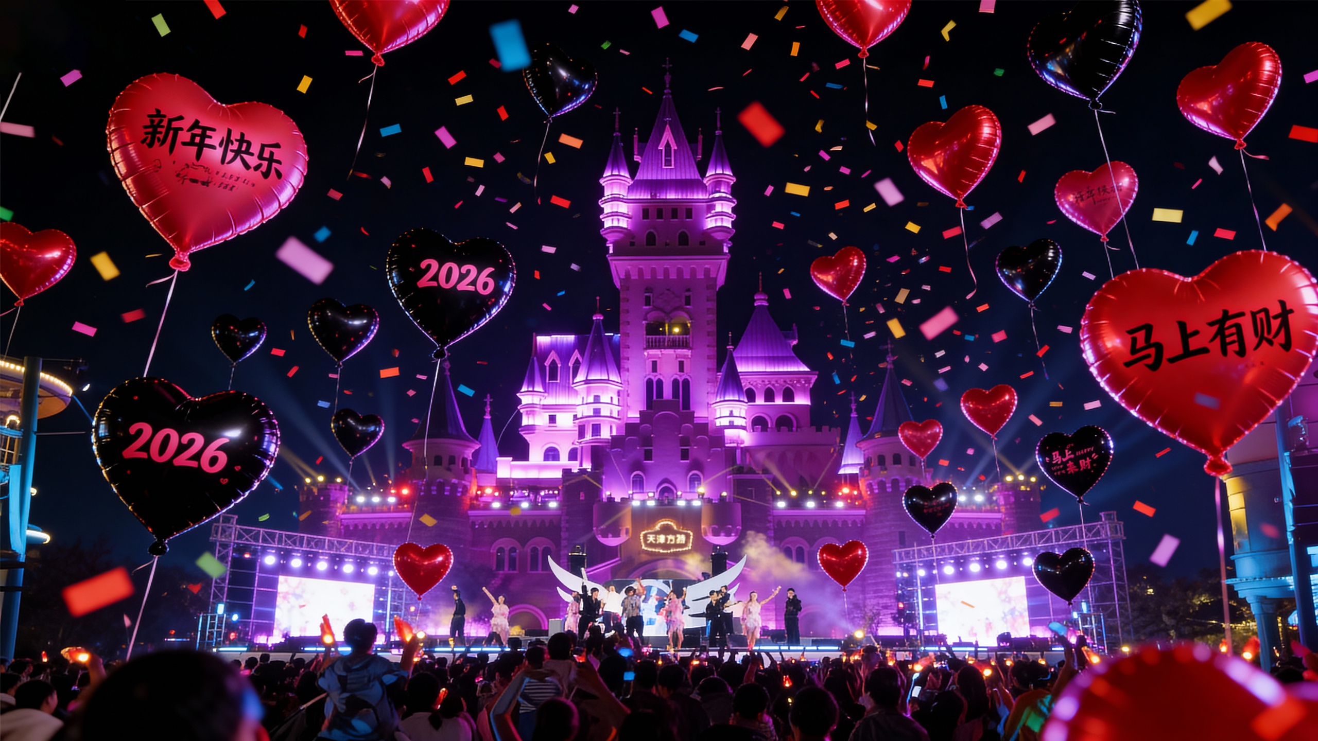 据悉,跨年戏剧节期间,园区体验也将全面焕新。全新项目“碰碰车大乱斗”与“蹦蹦云弹跳场”将于12月31日正式开放,为市民游客带来更多新鲜刺激的游园体验。值得一提的是,12月31日,天津方特营业时间延长至24:00,备受期待的“跨年狂欢派对”将于当晚璀璨登场,市民可在零点齐聚城堡舞台前方,共同迎接2026年的零点钟声。(天津方特供图)