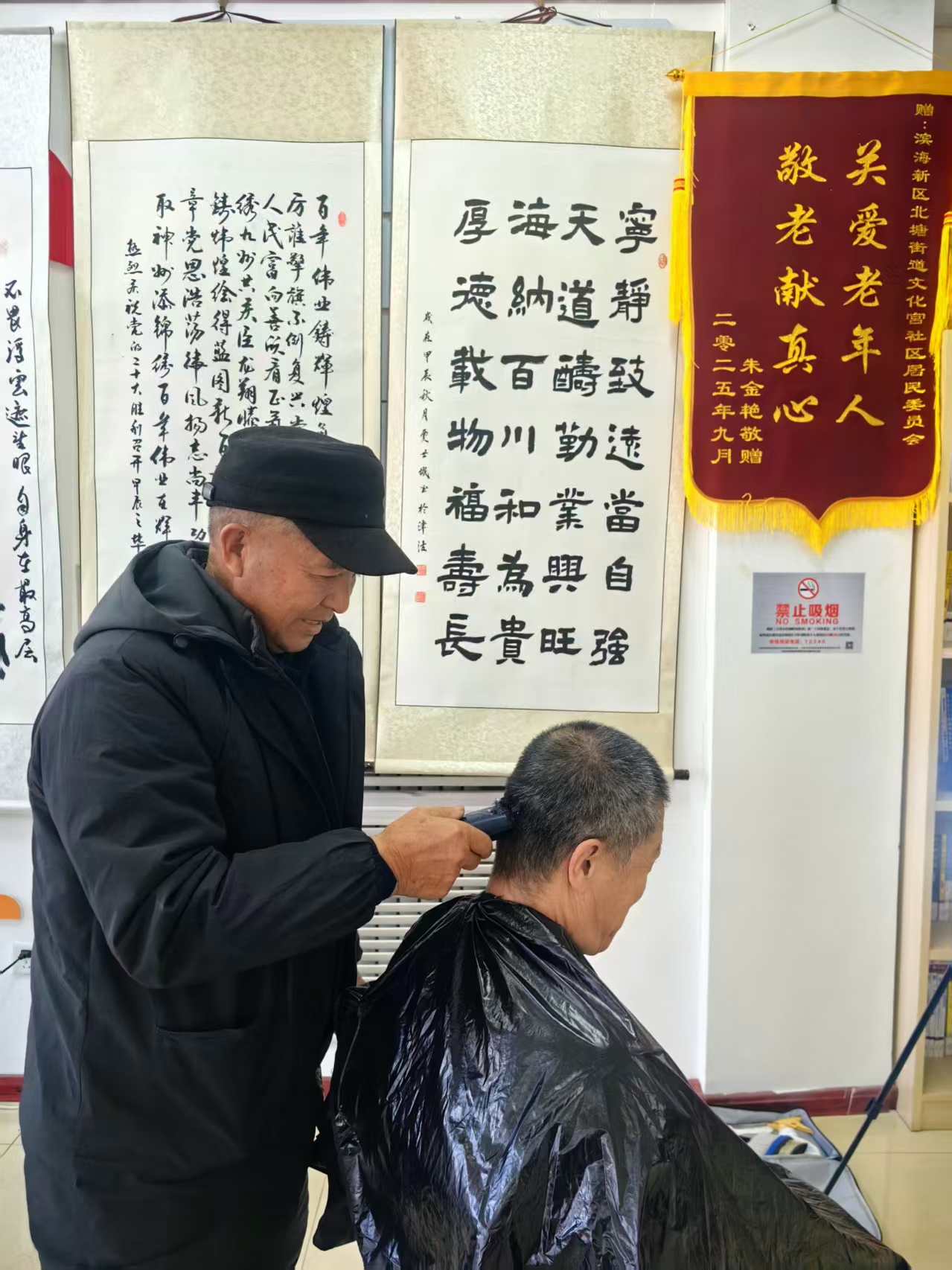 义务剪发区则充满温情,志愿者理发师技艺娴熟,一边与居民亲切沟通发型需求,一边麻利地修剪发丝,伴随着剪刀的“咔嚓”声,老人们的发型变得清爽利落,精神面貌焕然一新。尤其是针对行动不便的老年居民,志愿者们全程细心照料,让大家足不出社区就能享受便捷服务,切实感受到社区大家庭的温暖。