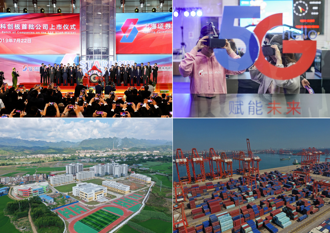 凤凰展翅,逐梦蓝天。国庆节前,北京大兴国际机场正式投运。不到5年时间,完成预定建设任务,创造了新的奇迹。我国第一艘国产航空母舰山东舰交付海军;5G商用牌照正式发放;嫦娥四号探测器实现人类探测器首次月背软着陆;长征五号运载火箭成功发射实践二十号卫星;到今年底,铁路营业里程达到13.9万公里以上,其中高铁3.5万公里,居世界第一……这一年,这些新成果总能让人欣喜振奋。
