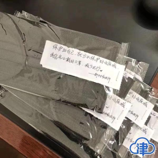暖心的他,还在每一个口罩包装外留下了纸条:“保护好自己,就可以保护好这座城。请您务必戴好口罩,减少出行”。