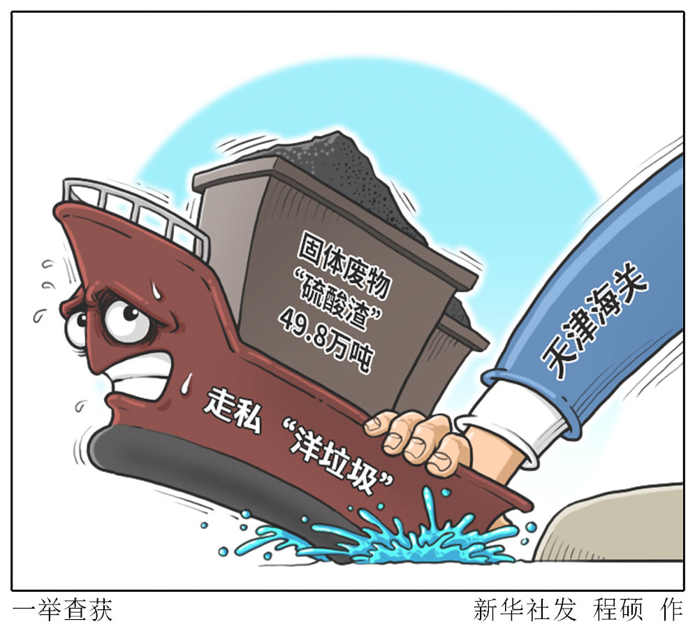 记者13日从天津海关获悉,天津海关缉私局日前接到举报,某货轮运载数万吨工业废物“硫酸渣”到天津港,可能伪报成“铁矿粉”走私进境。缉私部门立即启动天津海关固体废物监管打私联动机制,通过电子数据分析,检索到该货物的收货方湖南某公司已申报进口6票“铁矿粉”类货物,均有走私嫌疑。