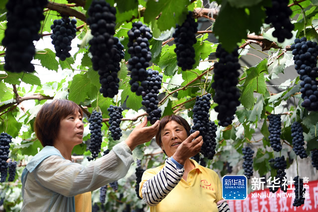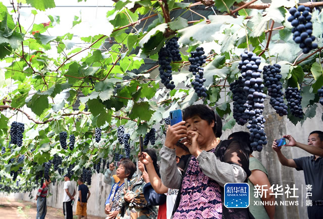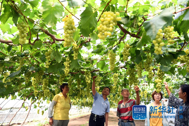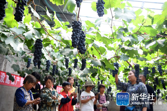 天津市武清区梅厂镇近年来着力发展都市型现代农业,打造葡萄种植示范基地,提升葡萄品质,并将葡萄新品种和葡萄种植新技术推广到周边乡村进行设施化生产。时值夏日,当地果农迎来大棚葡萄丰收季。