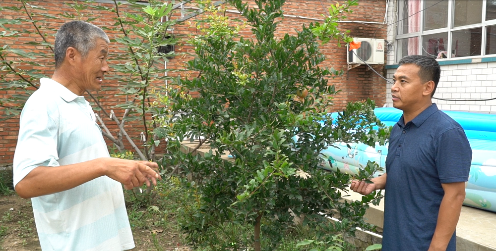 天津市住房和城乡建设委员会驻村工作组组长赵诚(右)入户和村民交流。受访者供图