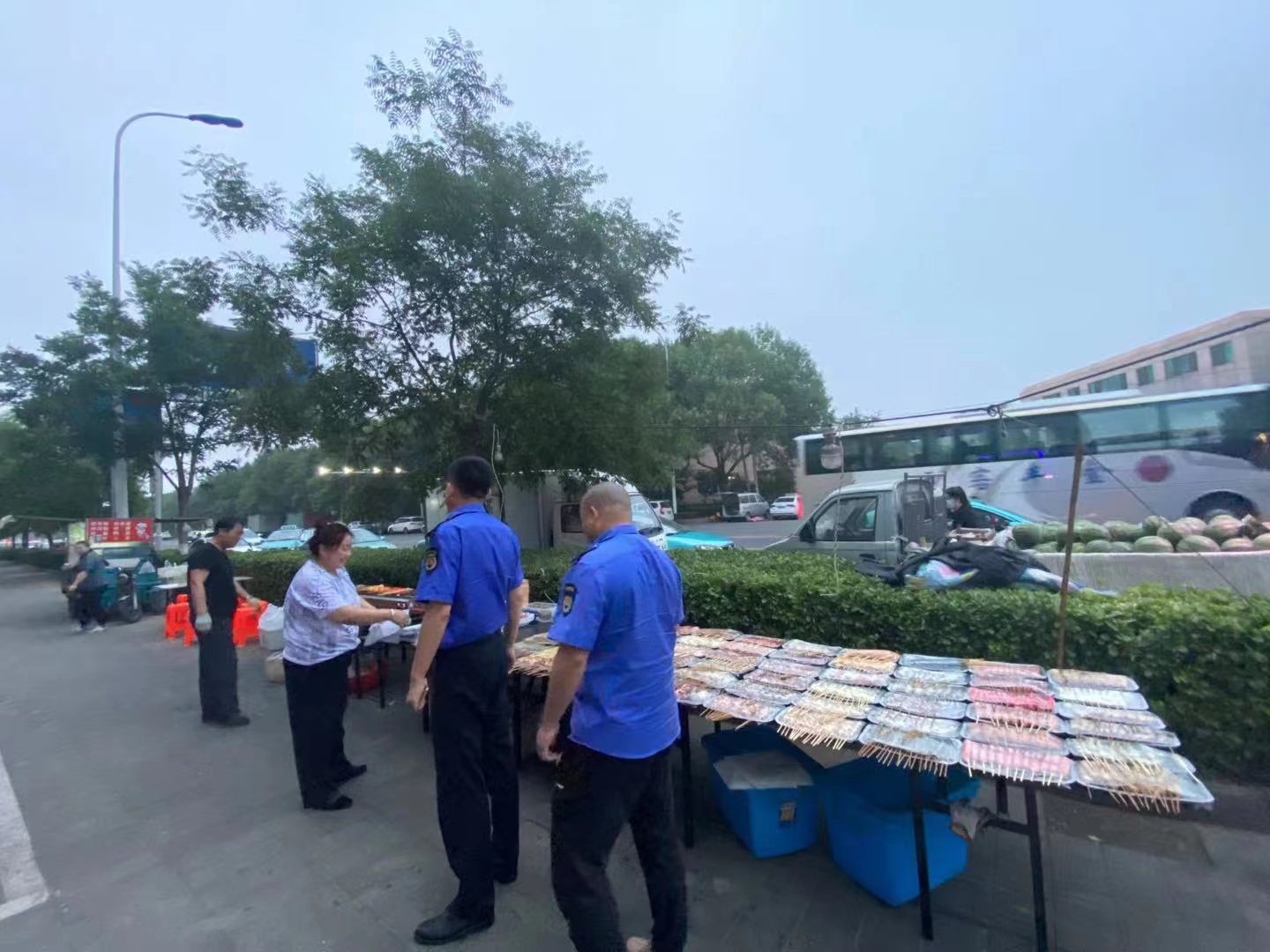 综合执法工作人员正在对商贩进行劝导