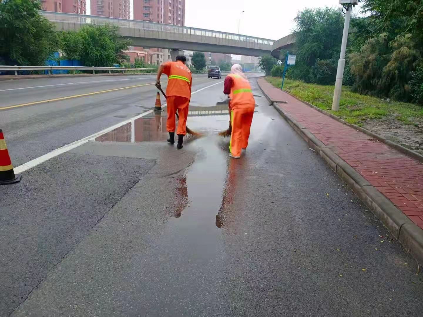 塘沽地区从6时开始突降暴雨,黄色预警转为红色预警,区交通运输服务中心启动防洪IV级应急响应,出动应急车辆16台,人员80人,帽锥500个,防撞桶30个,水泵10台套及小型设备设施。各条高速持续不断进行排水作业,并做好安全提示。