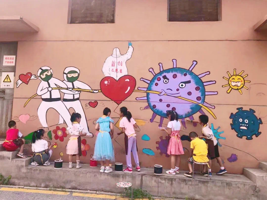 新时代文明实践看滨海 | 新北街道首创国际社区:手绘疫情防控墙 画出满满正能量