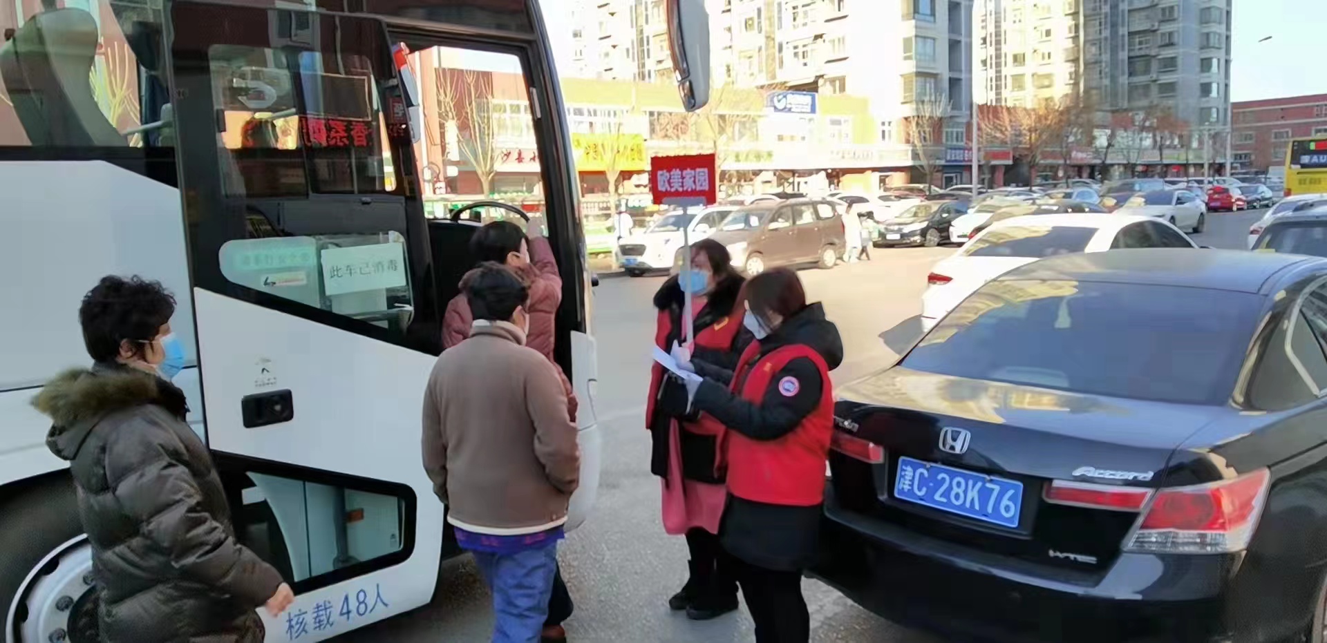 近日,欧美家园社区在街道包保领导的组织下,联合“1314”志愿服务队走访宣传接种工作。走访过程中,发现一对老夫妻刚从外地来,使用的是老年手机,也不认识字,想接种新冠疫苗,但子女无法陪同前往疫苗接种点,心里很着急。欧美家园社区马上记录人员信息,统计需要乘车接种的居民,联系辖区“爱心服务车队”志愿者开车带领大家到接种点位统一接种。