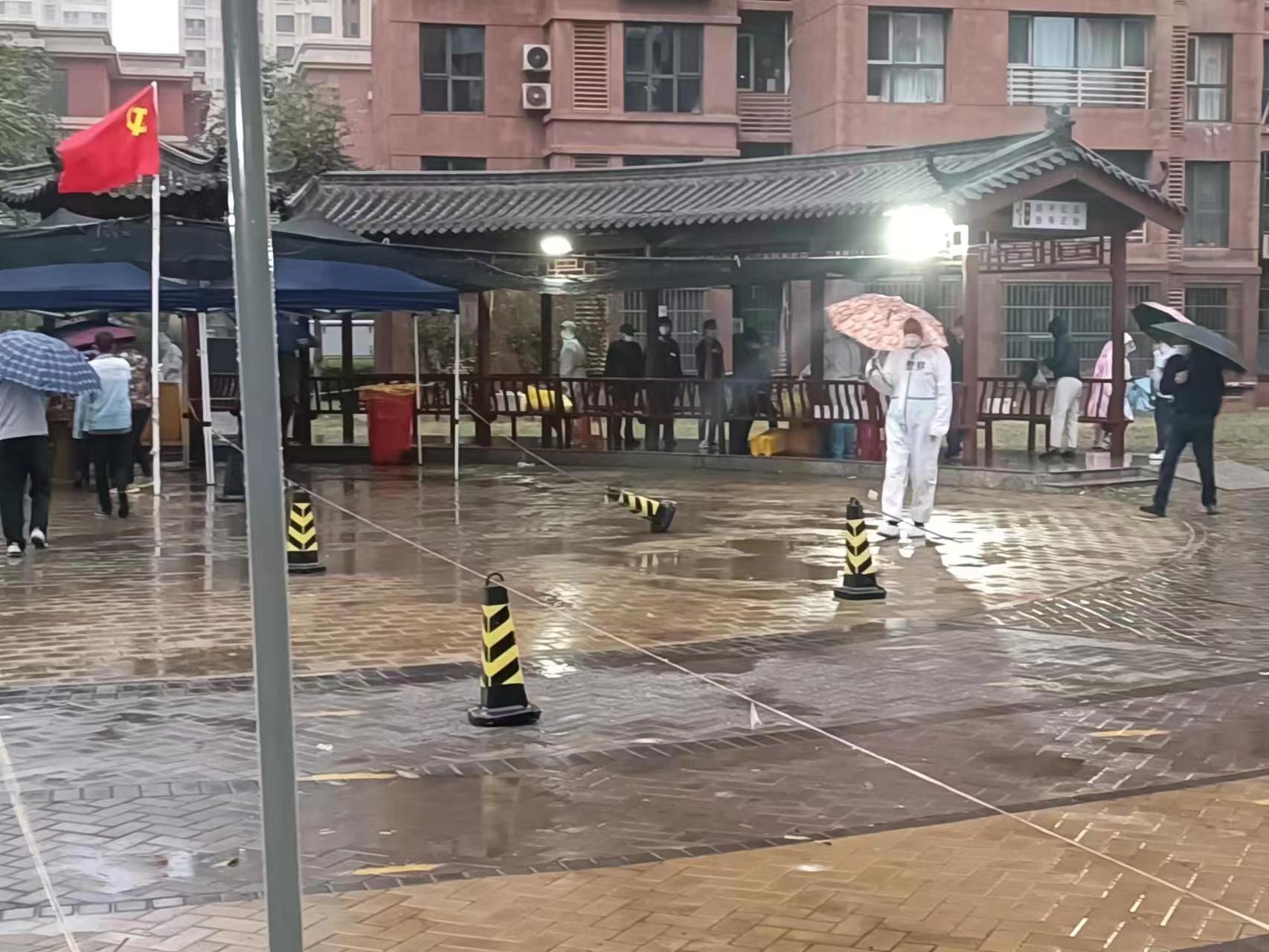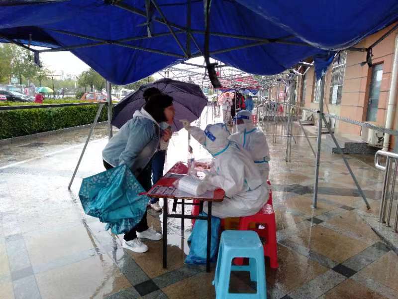 “雨天路滑,请大家小心慢行。”“注意脚下的台阶。”一声声亲切的提醒,一句句温暖的叮嘱,一遍又一遍地提示安抚着居民。“感谢医护人员、志愿者的温馨提示,感觉心里热乎乎的。”一位居民说,“雨天为核酸检测工作带来不便,但医务人员任劳任怨、志愿者无私奉献,用责任和爱心搭建起抗击疫情的‘防护伞’。”