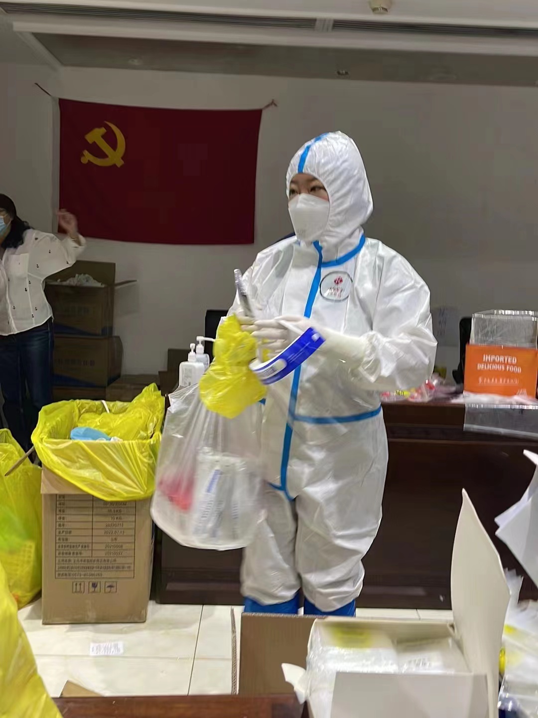 “同志们今天很辛苦,在今天强风降雨恶劣天气中组织21个小区试管转运,参与康翠社区和格调林泉小区物资清点整理等,深入高风险楼栋入户检测314人次,清点分发高风险楼栋抗原组件与核酸条码管共400套。”10月3日晚上,杨家泊镇抗疫支援组临时党支部书记牛志宏正在给队员们进行工作总结,布置安排明天的工作。