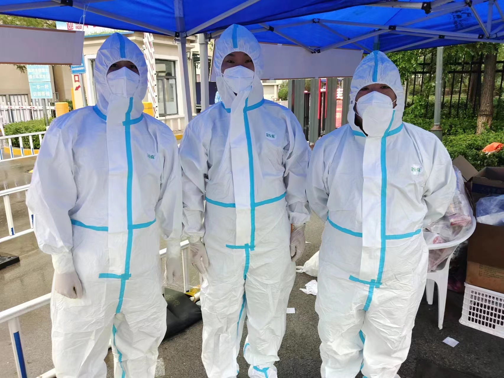 小雨绵绵,一下车,参与支援的同志们就将行李紧急放到酒店的一个空房间,然后迅速奔赴防疫一线。领取防护物资,穿戴好防护服、鞋套、手套等防护设备……在现场,大家按照操作步骤一步步将防护用具穿戴齐全并用马克笔在防护服外侧做好汉沽街道标记后,根据杭州道街工作人员的统一安排部署,分别深入到社区,协助社区开展防疫工作。据了解,本次支援行动中的工作人员,除了协助核酸采样、摸排信息等工作,帮助兄弟社区工作人员运送物资等,“每个人确保样样行,有需要时,谁有空就轮流去做。”汉沽街道疫情支援先锋队临时党支部委员杨立娟在电话里告诉记者。