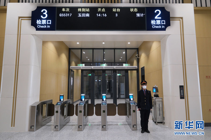 11月14日,京唐、京滨城际铁路宝坁站候车大厅进站检票口。新华网发(杨宝森 摄)