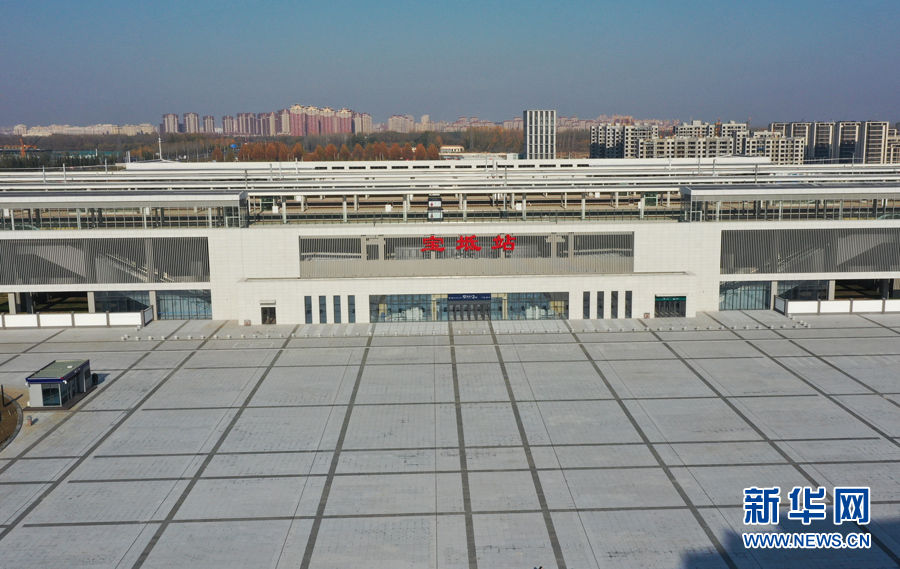 11月14日,京唐、京滨城际铁路宝坁站外景(无人机照片)。新华网发(杨宝森 摄)