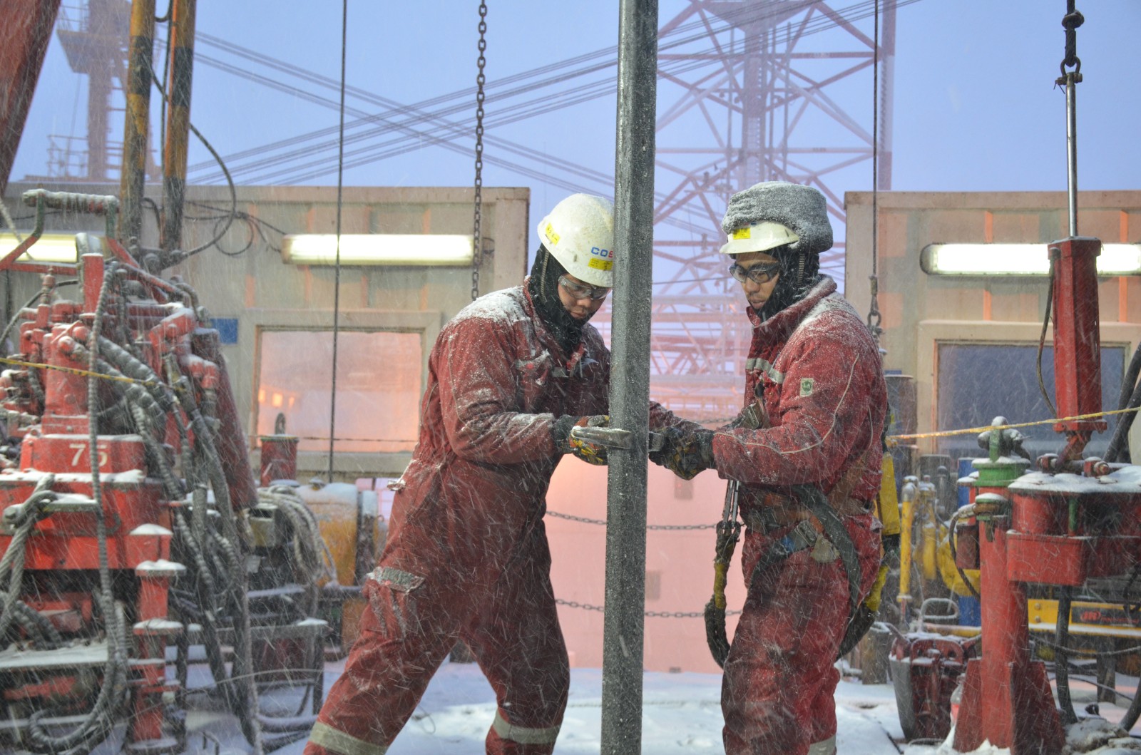 12月16日,旅大27-2区块,冬意渐浓,肆意的寒风将初雪带到了海洋石油921钻井平台。