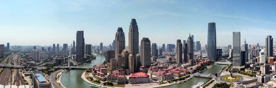 这是6月16日从直升机上拍摄的天津海河沿线城市景观。新华社记者 孙凡越 摄