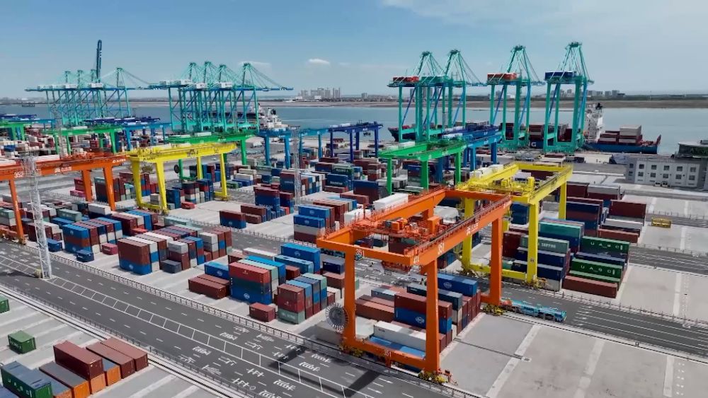走进全球首个“智慧零碳”码头——天津港北疆港区C段智能化集装箱码头,全流程无人自动化作业场区内,人工智能运输机器人往来穿梭。
