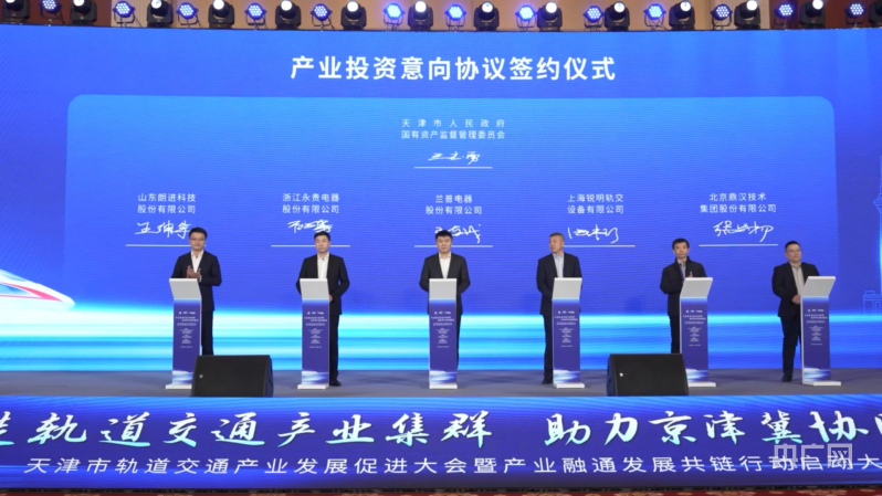 会上,天津市人民政府与中车集团、中国中铁、中交集团签署战略合作协议,深化基础设施投资建设、智慧轨道交通产业、TOD建设开发等领域合作,实现共同发展;天津市国资委与山东朗进、浙江永贵、兰普电器、上海锐明、北京鼎汉等28家拟在津投资的轨道交通装备制造企业签署产业投资意向协议,意向投资额达7.1亿元;天津轨道交通集团分别与天津大学、东南大学、西南交通大学、河北工业大学、天津财经大学等高校,与中车唐山、中车四方、中铁投资、中交轨道、华为技术有限公司、邮储银行天津分行等企业签署战略合作框架协议;泰达控股公司与中铁电气化局、华为技术有限公司签署战略合作框架协议。