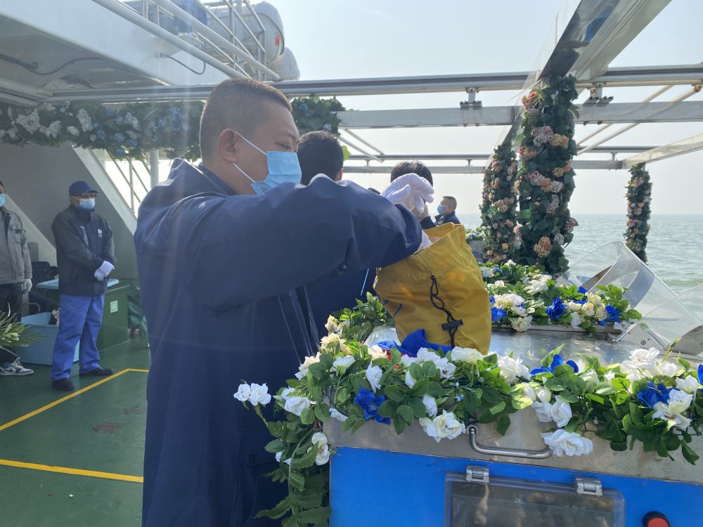 2024年清明前夕,工作人员正在进行海葬准备工作。新华社记者 尹思源 摄