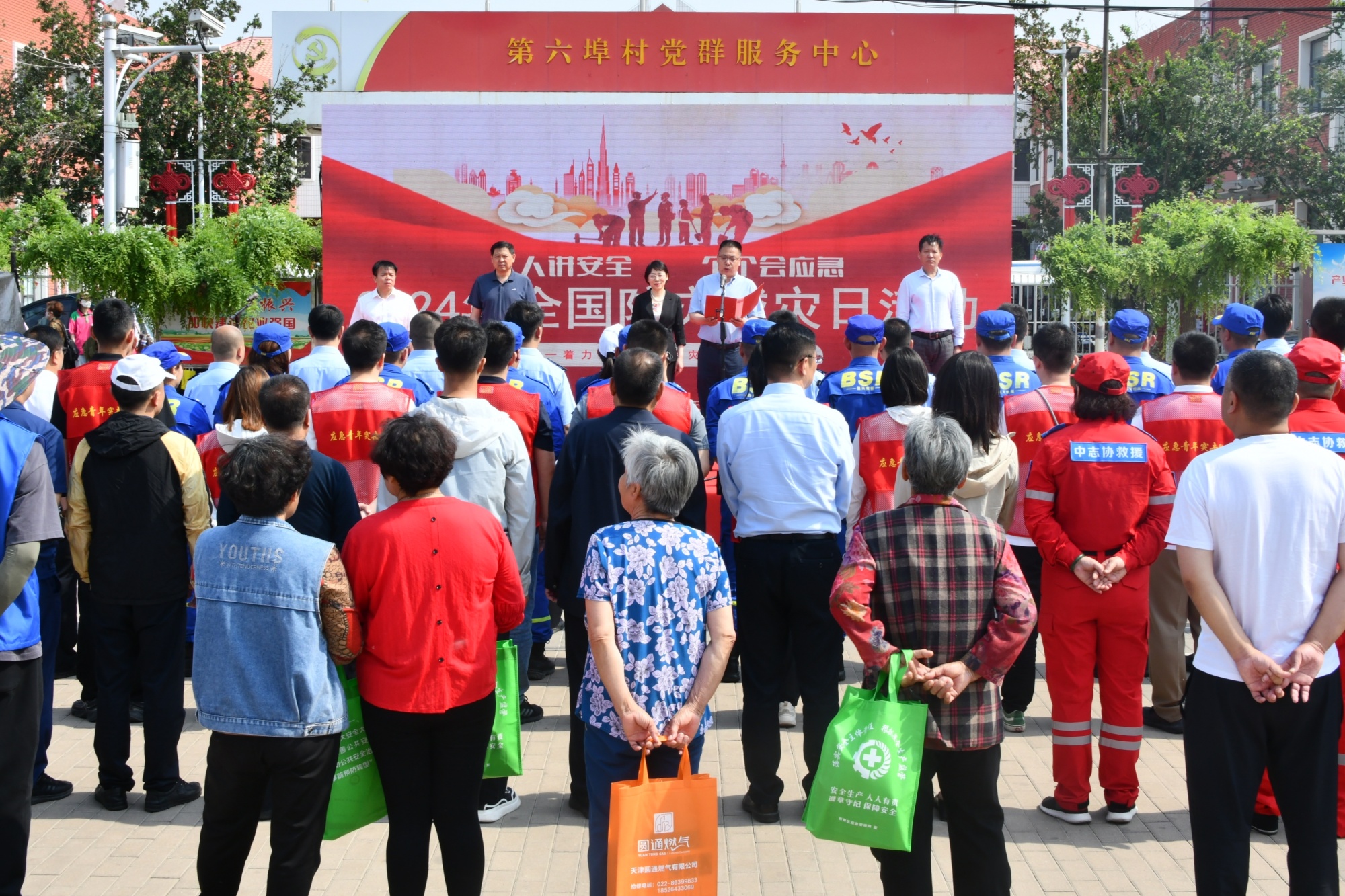 天津市应急管理局、西青区有关领导同志,天津市应急管理局有关处室负责同志、应急青年突击队队员,西青区应急管理局及有关单位负责同志,社会救援力量和志愿者协会代表,第六埠村村民代表等300余人参加活动。
