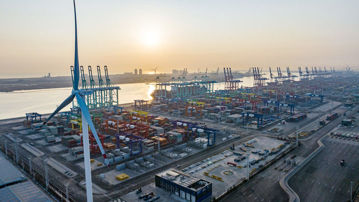 天津港“智慧零碳”码头。(新华社记者赵子硕摄)