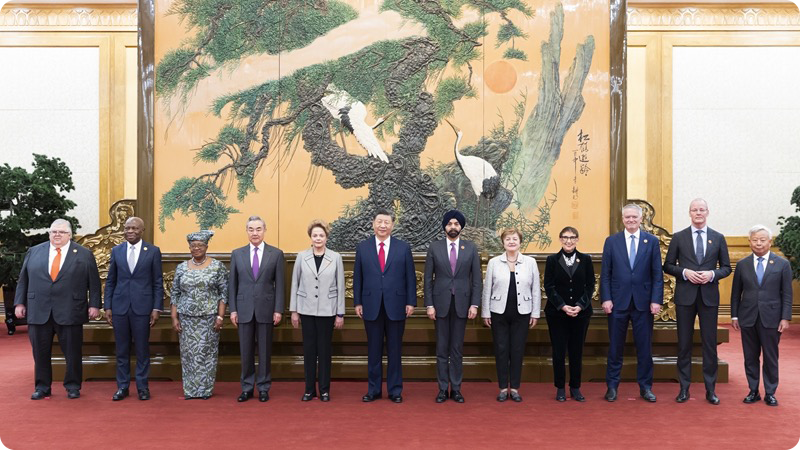 12月10日,习近平主席在北京人民大会堂会见来华出席“1+10”对话会的主要国际经济组织负责人
