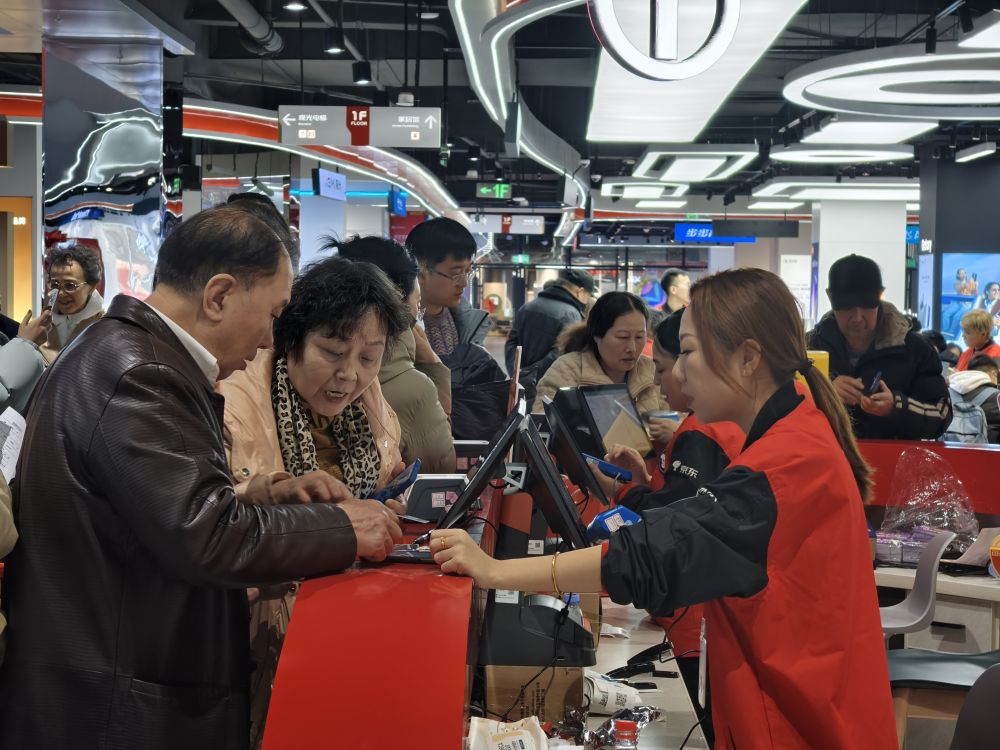 京东五星电器(天津)集团有限公司副总经理吴梦康说,近日来,京东MALL超级体验店连续多日客流量超万人。1月25日,京东电商平台上线补贴活动首日,销售的手机数码补贴商品就超过5000台,销售额突破1600万元。